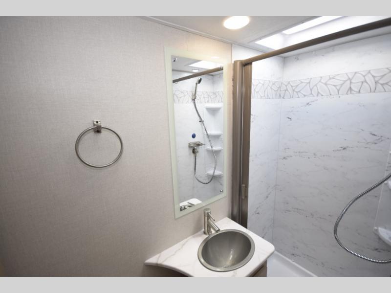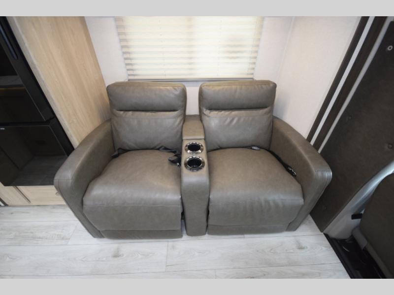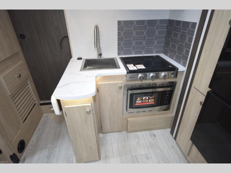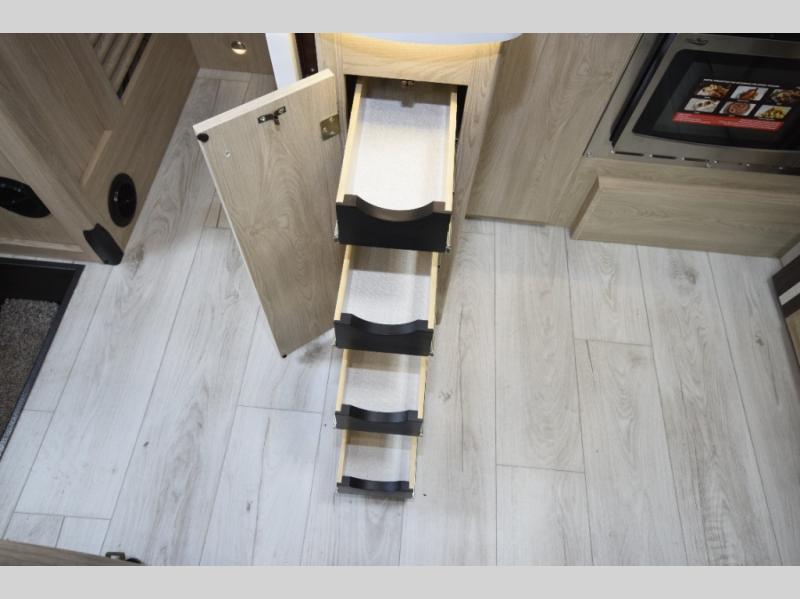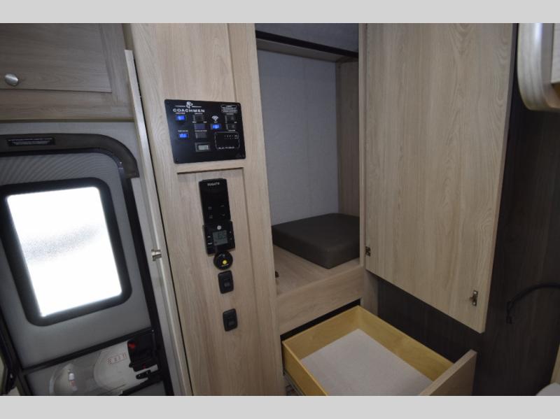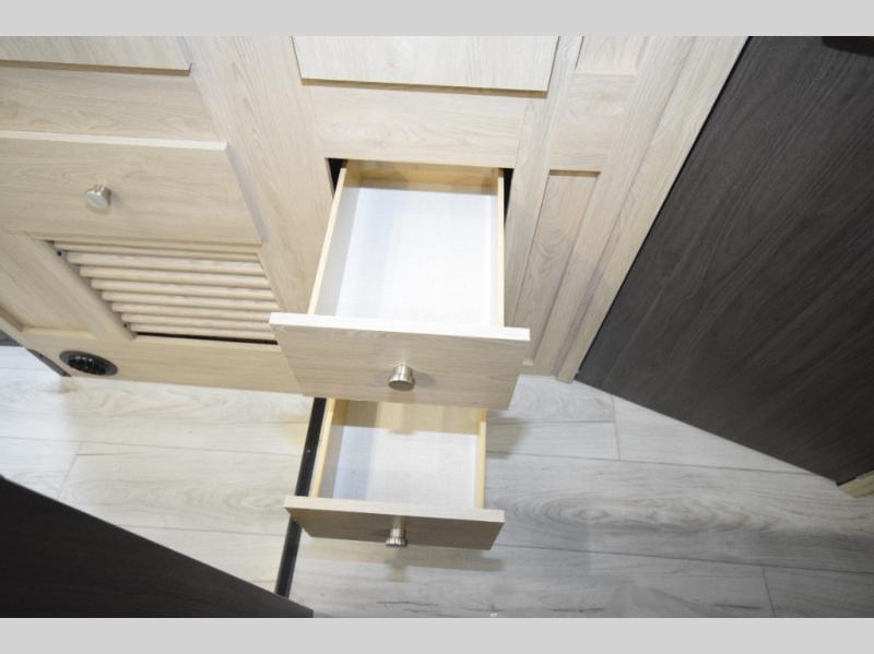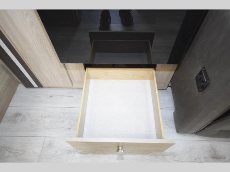 When you hit the road in the Leprechaun, you’ll enjoy better interior appointments that make every trip more enjoyable. Sleep in comfort on residential-sized beds, enjoy the luxury of an on-demand tankless water heater, and stay cool with a 15,000 BTU A/C. The 7" touchscreen dash radio with CarPlay and backup monitor make navigating the open road easier than ever.