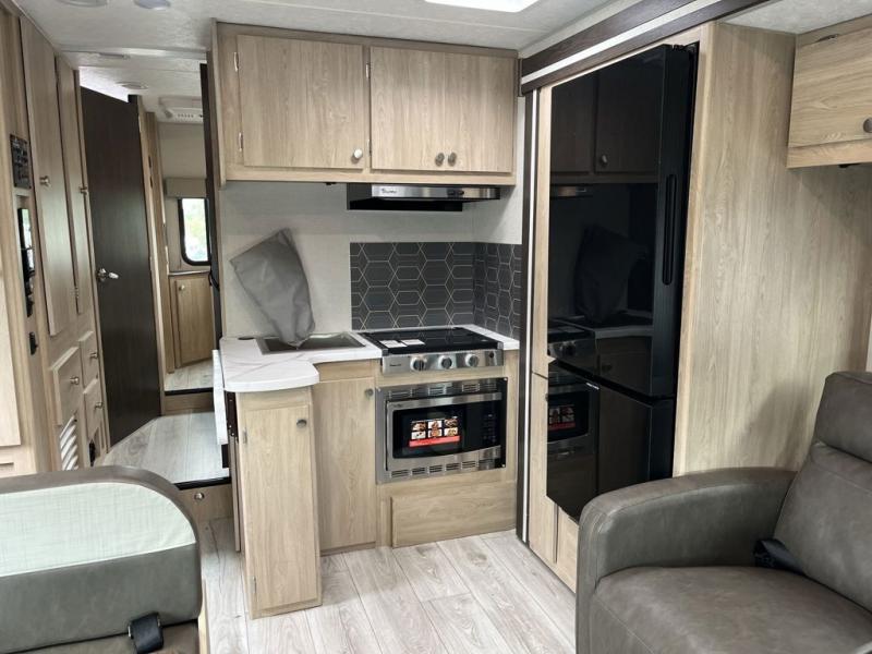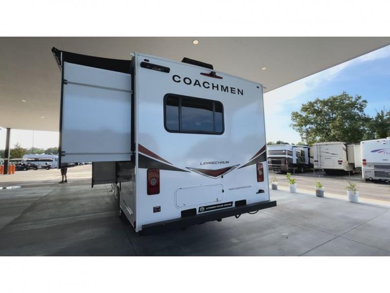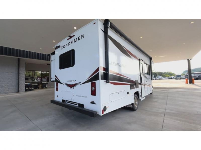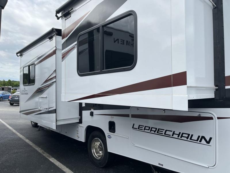 With each Leprechaun Class C gas motorhome by Coachmen you will enjoy "better" interior appointments, like the residential-sized beds, on-demand tankless water heater, and 15,000 BTU A/C. A dash radio and a backup monitor will let you easily navigate the open road like pro. There are also pleated night shades inside, along with premium vinyl flooring, a shower skylight, and USB charging ports to name a few comforts and conveniences. The Leprechaun is constructed with composite sidewall and cabover floor construction plus a seamless one-piece roof material for a durable motorhome made to last.