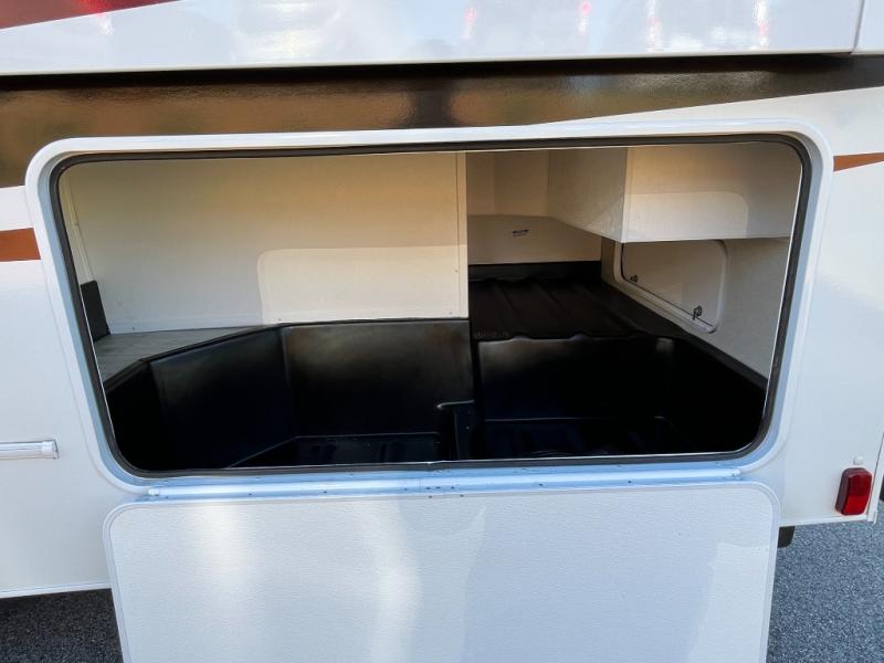 The worst thing you do could is pass up this Leprechaun Class C gas motorhome! This coach is filled with exceptionally helpful amenities, like the flip-down extension in the kitchen, the J-lounge with 18" extension, the full bathroom to stay clean throughout your trip. You have lots of great options with this coach because there is an optional outdoor kitchen table you can add as well as an optional outdoor entertainment center or optional power recliners. The two slides create extra space on the interior for you to relax, and the swing-arm TV will be fun to watch.