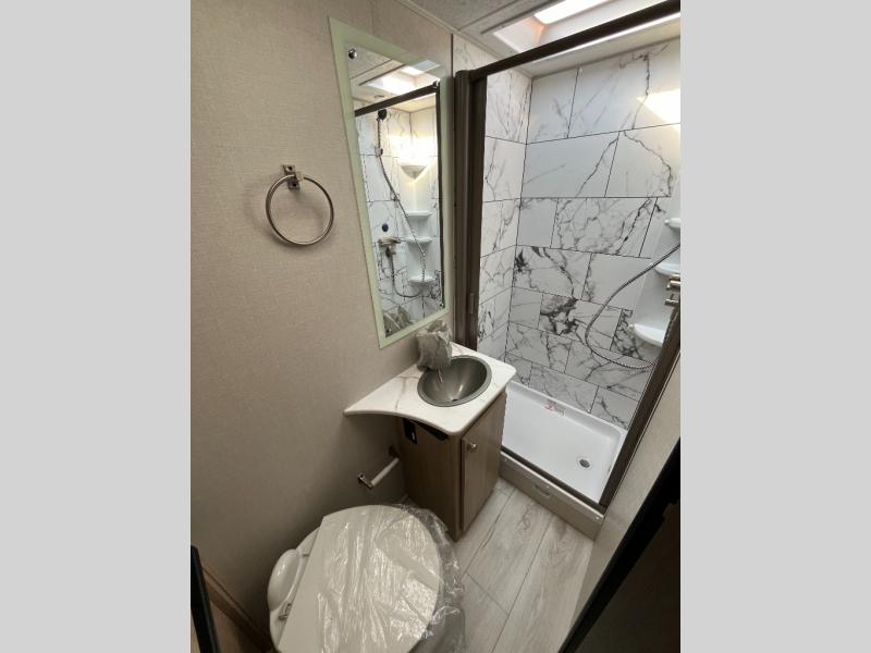 With each Leprechaun Class C gas motorhome by Coachmen you will enjoy "better" interior appointments, like the residential-sized beds, on-demand tankless water heater, and 15,000 BTU A/C. A 7" touchscreen dash radio with CarPlay and a backup monitor will let you easily navigate the open road like pro. The Leprechaun is constructed with composite sidewall and cabover floor construction plus a seamless one-piece roof material for a durable motorhome made to last.
