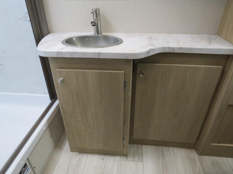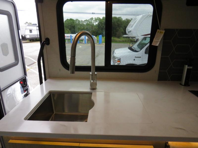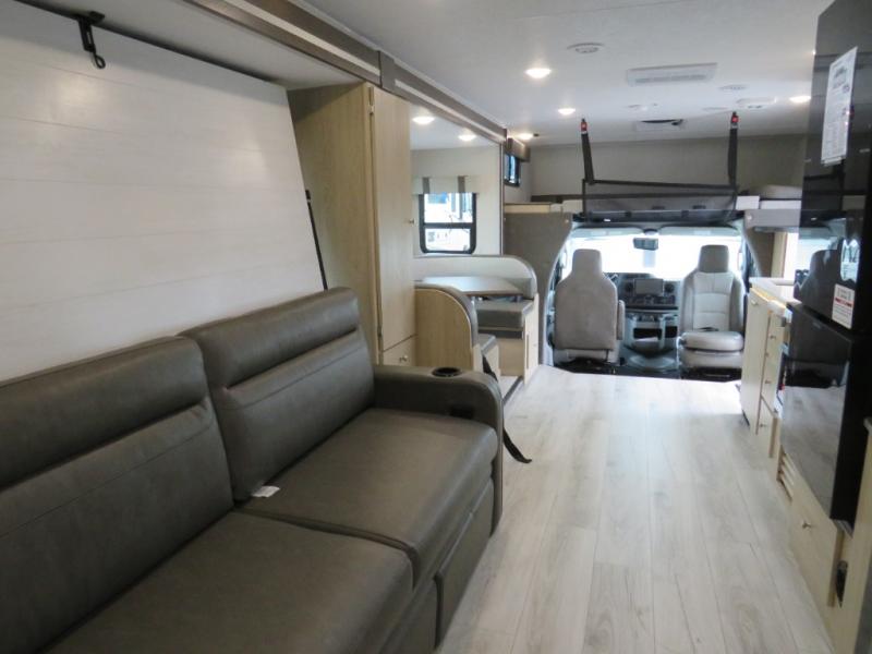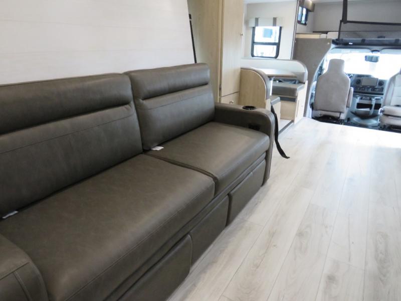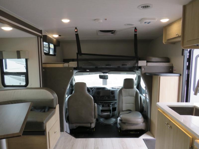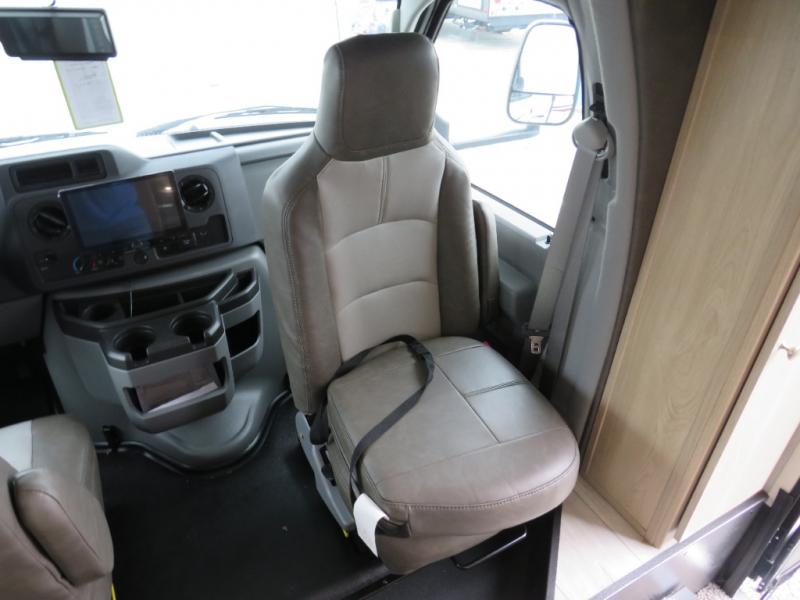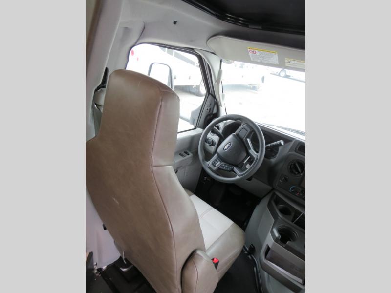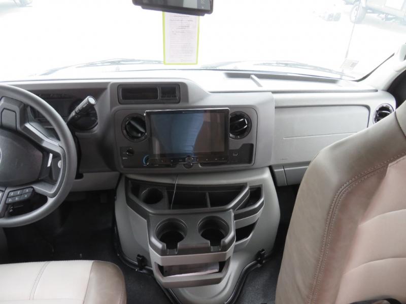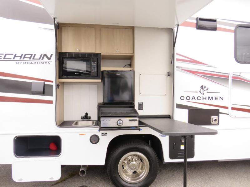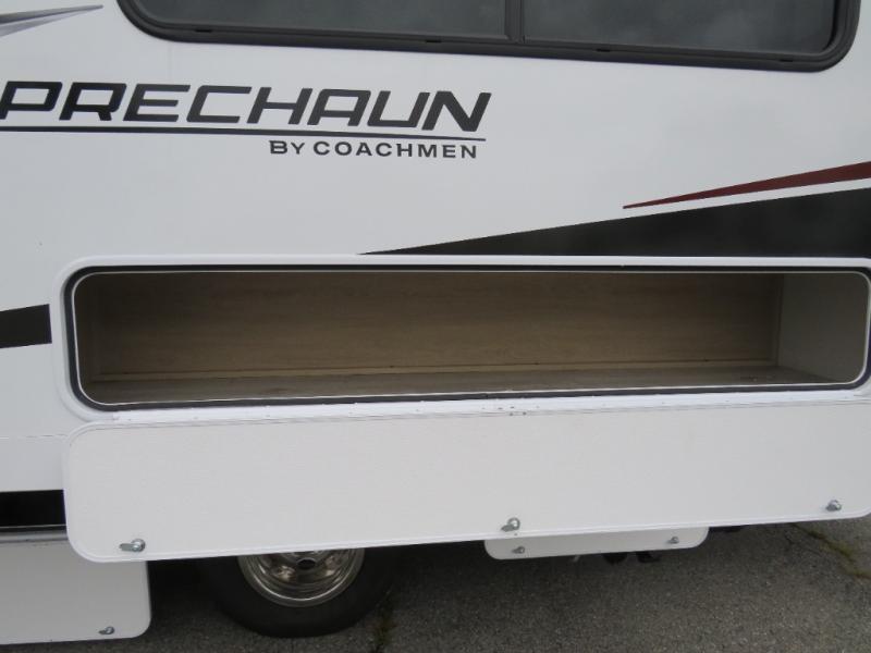 With each Leprechaun Class C gas motorhome by Coachmen you will enjoy "better" interior appointments, like the raised panel cabinetry, the one-piece thermofoil countertops, and the premium vinyl flooring. You will sleep soundly each night on the mattress with a bedspread, and staying clean will be easy with the premium showerhead and faucet in the bath. These models include reclining cockpit seats, cruise control, and a rear backup camera so you can easily get in and out of the campground. The Leprechaun is constructed with Azdel composite sidewalls, a seamless, one-piece roof membrane, and vacu-bond laminated walls, roof, and floor for a durable motorhome made to last.