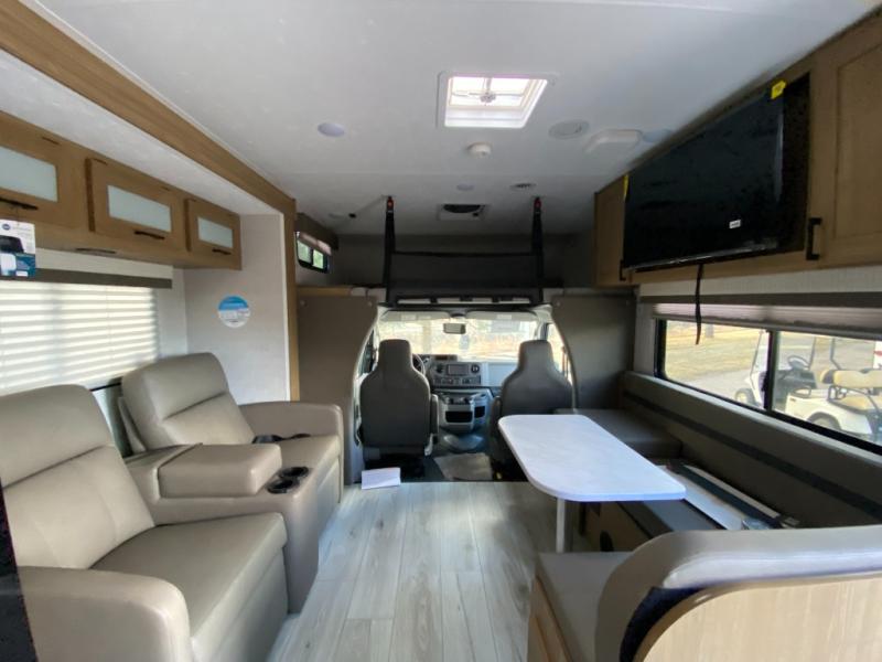 With each Leprechaun Class C gas motorhome by Coachmen you will enjoy "better" interior appointments, like the residential-sized beds, on-demand tankless water heater, and 15,000 BTU A/C. A dash radio and a backup monitor will let you easily navigate the open road like pro. There are also pleated night shades inside, along with premium vinyl flooring, a shower skylight, and USB charging ports to name a few comforts and conveniences. The Leprechaun is constructed with composite sidewall and cabover floor construction plus a seamless one-piece roof material for a durable motorhome made to last.
