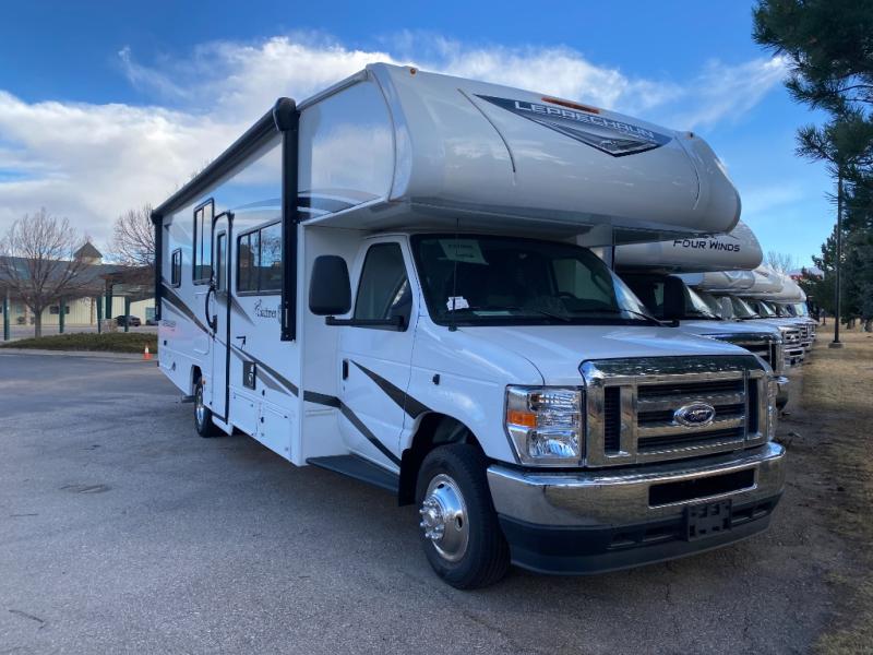 Take in the charm and style found on this Leprechaun Class C gas motorhome! The king bed slide is the perfect complement to the rear master suite, and the 44" x 76" J-lounge with 18" extension and 62" sofa are excellent additions to the living area. The kitchen has a three-burner cooktop with cover as well as a microwave oven for preparing easy meals. The 21' power awning will provide protection when you're enjoying time outdoors, and you might want to add the optional outside entertainment center for movie nights!