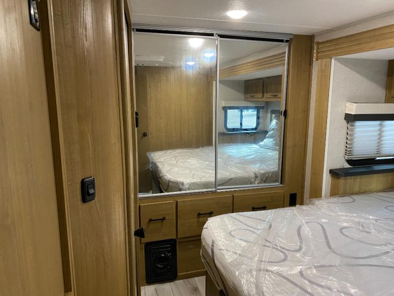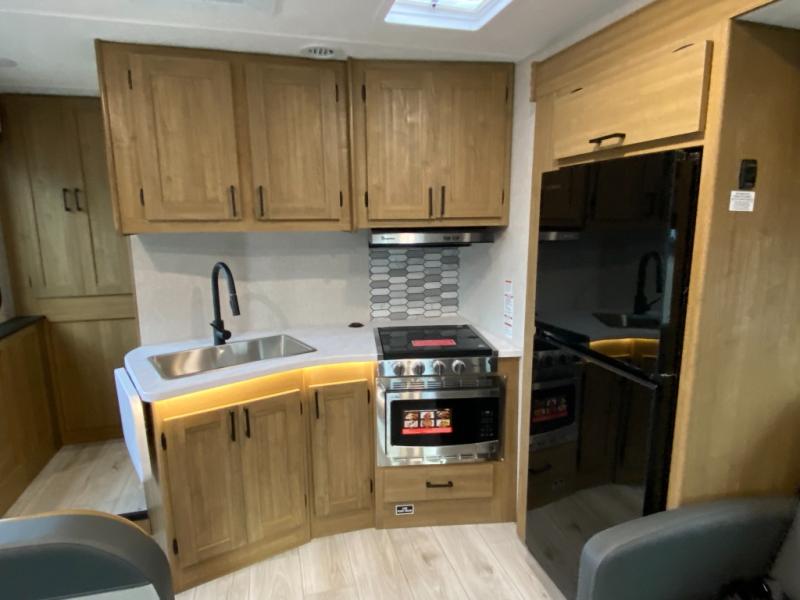 With each Leprechaun Class C gas motorhome by Coachmen you will enjoy "better" interior appointments, like the residential-sized beds, on-demand tankless water heater, and 15,000 BTU A/C. A dash radio and a backup monitor will let you easily navigate the open road like pro. There are also pleated night shades inside, along with premium vinyl flooring, a shower skylight, and USB charging ports to name a few comforts and conveniences. The Leprechaun is constructed with composite sidewall and cabover floor construction plus a seamless one-piece roof material for a durable motorhome made to last.