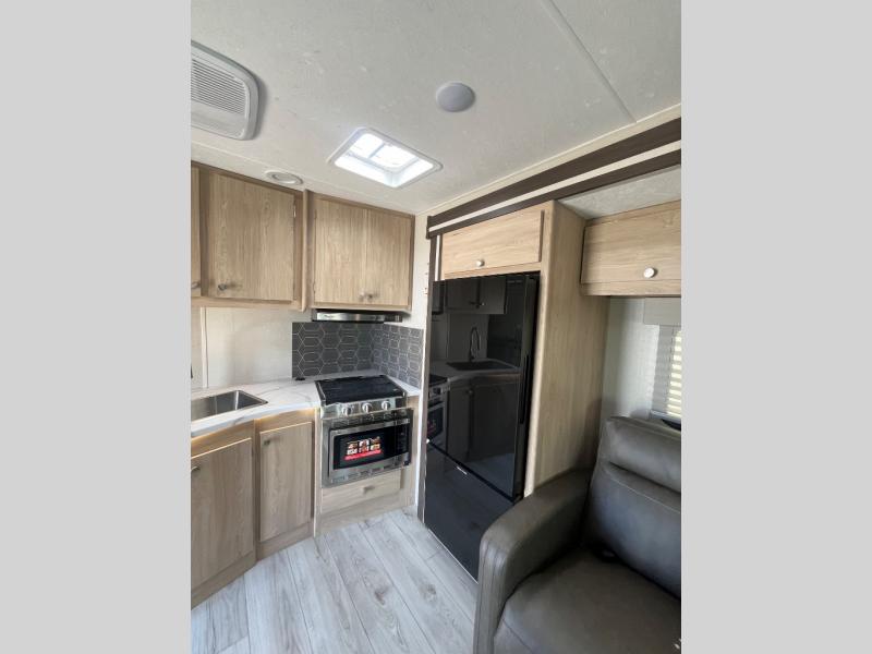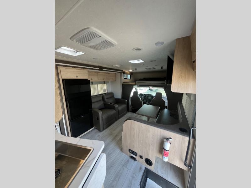 With each Leprechaun Class C gas motorhome by Coachmen you will enjoy "better" interior appointments, like the residential-sized beds, on-demand tankless water heater, and 15,000 BTU A/C. A dash radio and a backup monitor will let you easily navigate the open road like pro. There are also pleated night shades inside, along with premium vinyl flooring, a shower skylight, and USB charging ports to name a few comforts and conveniences. The Leprechaun is constructed with composite sidewall and cabover floor construction plus a seamless one-piece roof material for a durable motorhome made to last.