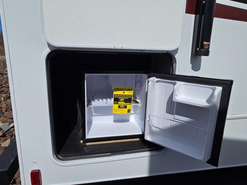 You'll have the time of your life in this Leprechaun Class C gas motorhome! There is a rear private bedroom with a queen-size bed and a wardrobe slide, and the bedroom is right next to the bathroom for convenience. Here you'll find a private toilet and sink with the shower right across the hall, and you can close off this space to make one big bathroom if you want! Out in the main living area, there is a large slide that holds the U-shaped dinette and sofa. These pieces of furniture sit directly across from the kitchen so that you can chat with the chef while preparing meals on the three-burner range or in the microwave. If you enjoy cooking outdoors, you might want to choose the optional camp kitchen!