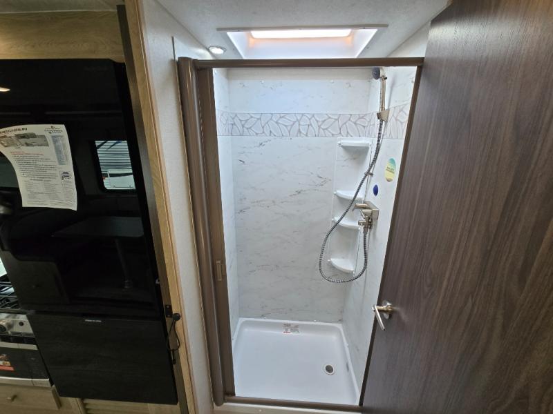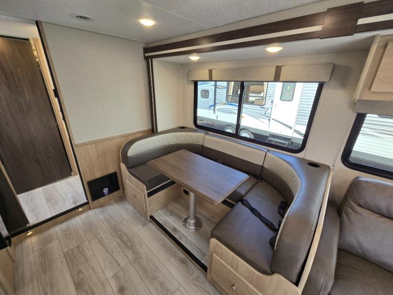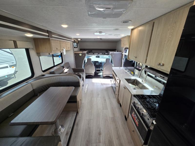 With each Leprechaun Class C gas motorhome by Coachmen you will enjoy "better" interior appointments, like the residential-sized beds, on-demand tankless water heater, and 15,000 BTU A/C. A 7" touchscreen dash radio with CarPlay and a backup monitor will let you easily navigate the open road like pro. The Leprechaun is constructed with composite sidewall and cabover floor construction plus a seamless one-piece roof material for a durable motorhome made to last.