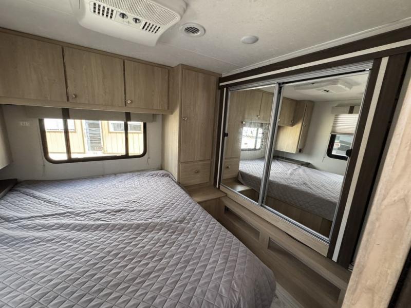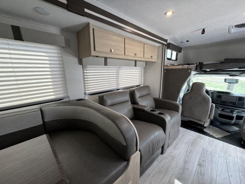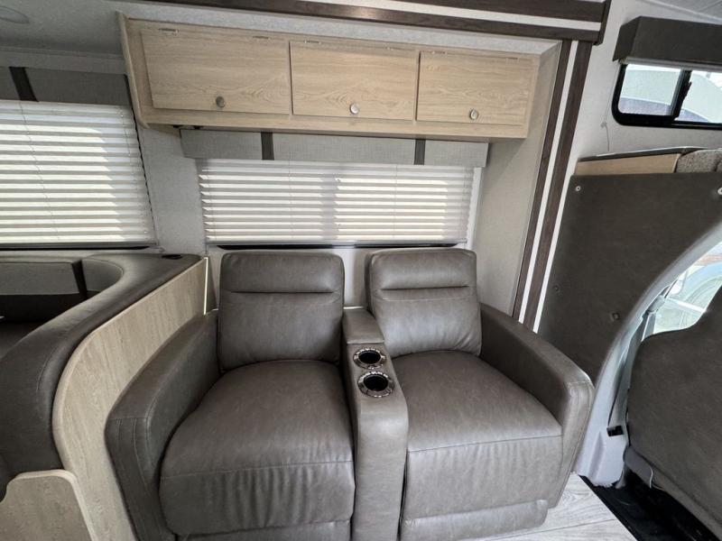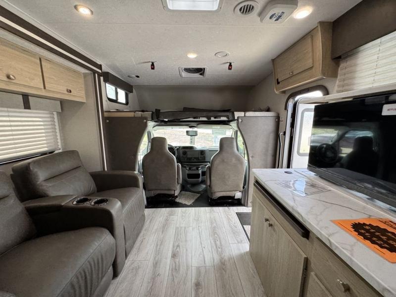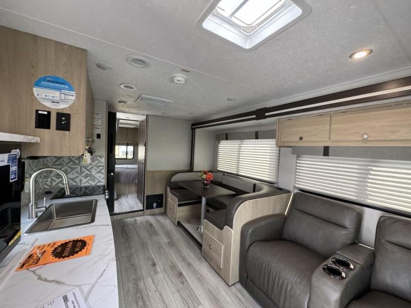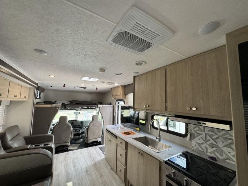 With each Leprechaun Class C gas motorhome by Coachmen you will enjoy "better" interior appointments, like the residential-sized beds, on-demand tankless water heater, and 15,000 BTU A/C. A dash radio and a backup monitor will let you easily navigate the open road like pro. There are also pleated night shades inside, along with premium vinyl flooring, a shower skylight, and USB charging ports to name a few comforts and conveniences. The Leprechaun is constructed with composite sidewall and cabover floor construction plus a seamless one-piece roof material for a durable motorhome made to last.
