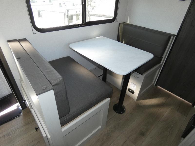 With any Northern Spirit Bijou travel trailer by Coachmen, you will find a solid built RV thanks to the Aluma cage construction and vacuum bonded laminated dual Azdel walls. There is also front rock guard and an insulated floor with seamless decking for added protection against the outdoor elements. An exterior dog leash and bottle opener is sure to come in handy, and the power awning with an LED light strip lets you enjoy outdoor time in comfort. Head inside to find night shades, LED lighting throughout, 12V USB outlets, and a Bluetooth speaker so you can keep the party going!