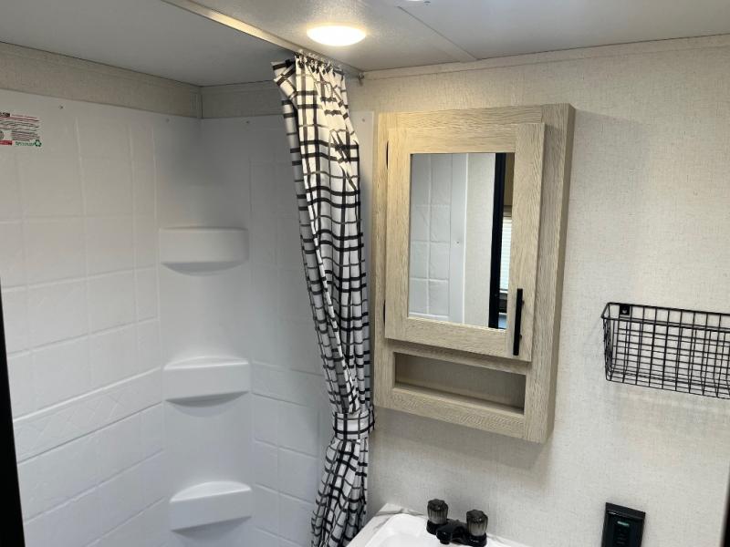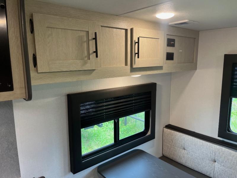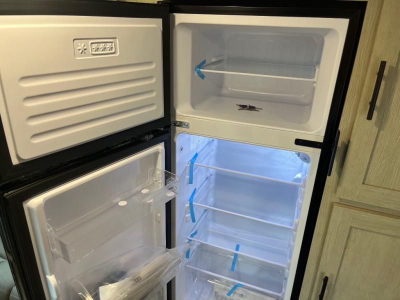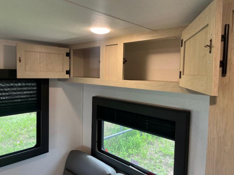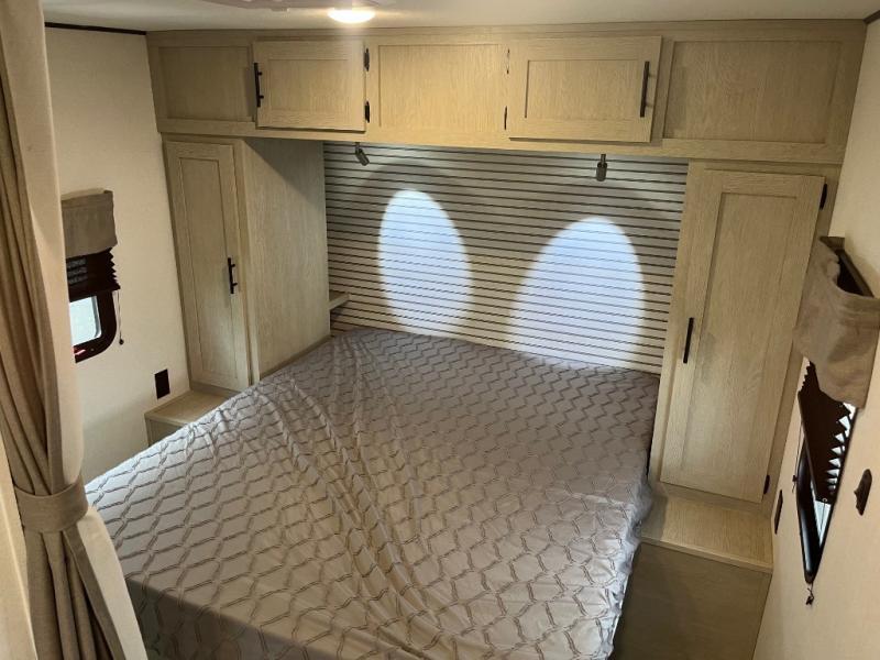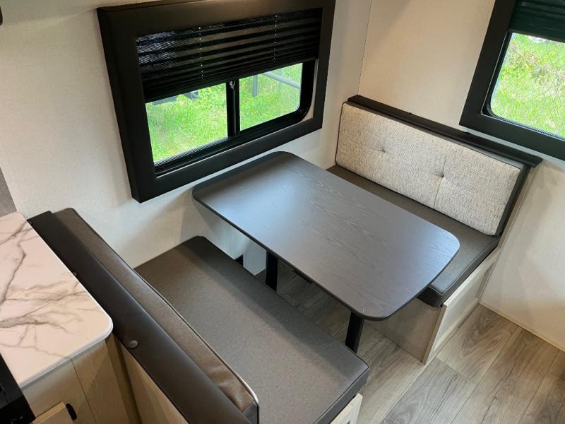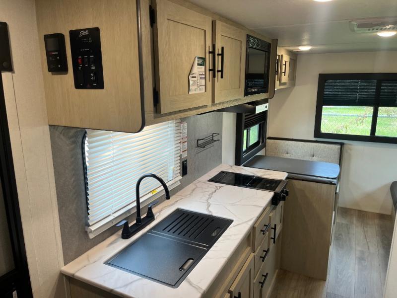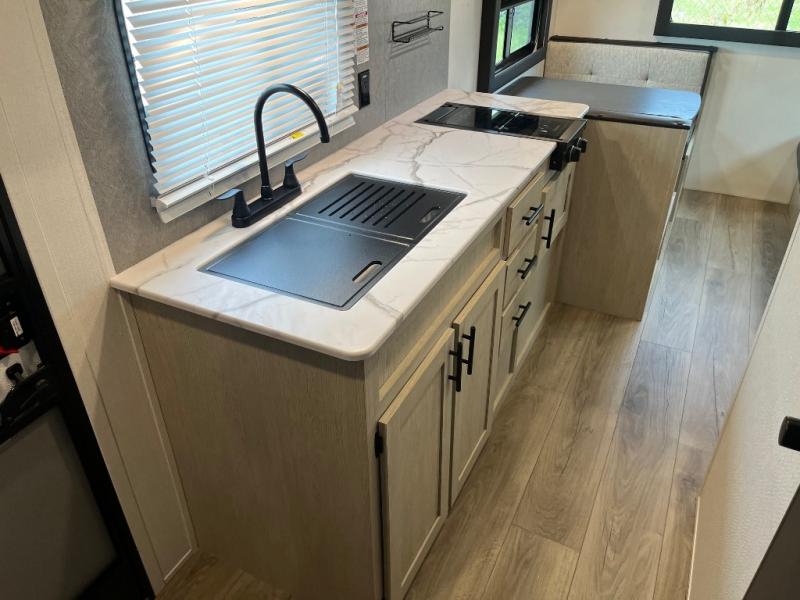 This non-slide trailer features everything you need for a cozy weekend away a a couples unit or small family of three or four. The rear of the unit features ample seating with opposing sofa and booth dinette. Each can accommodate a tired camper at night if needed. The kitchen is fully equipped for your camping trips featuring a three burner cooktop, a microwave cabinet, a large sink, plus a pantry and residential style refrigerator for food storage. In the front of this unit, a 60" x 74" RV queen bed provides a comfortable night's rest after a full day of fun. Outside, enjoy a nice pass-through storage compartment to easily access all of your outdoor camping gear plus more.
