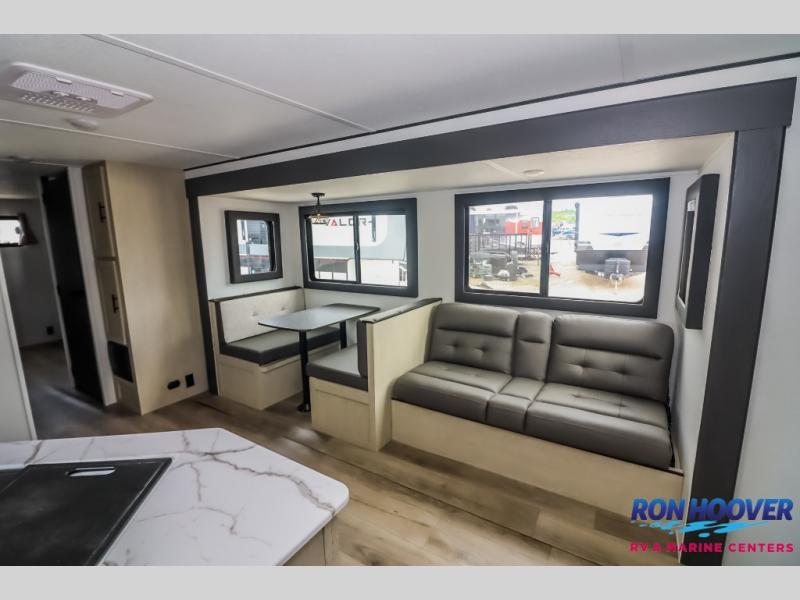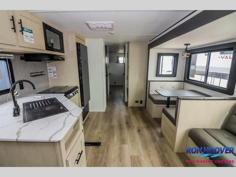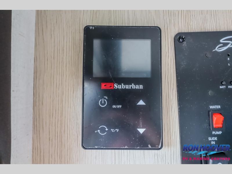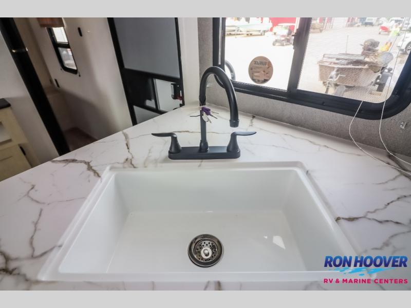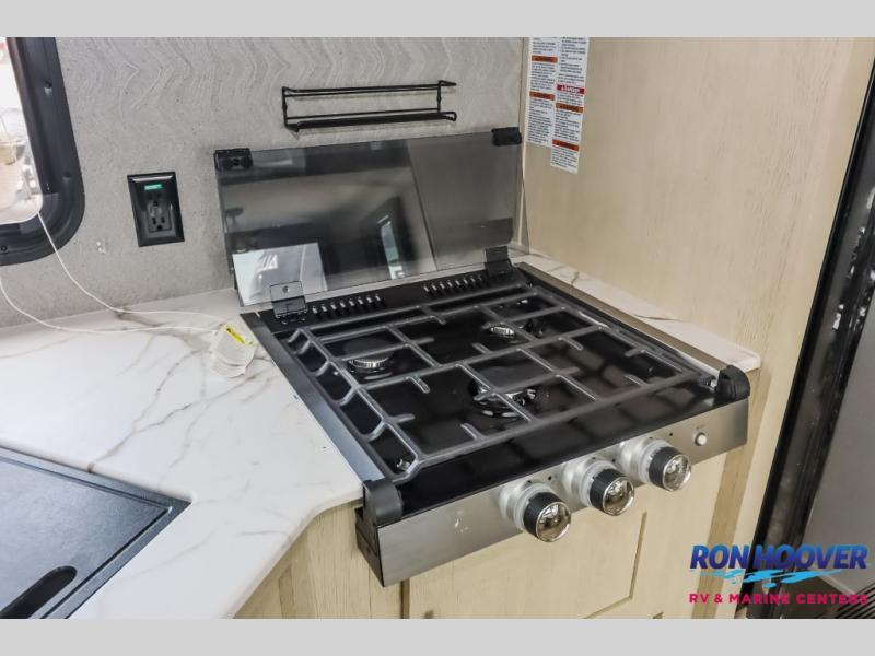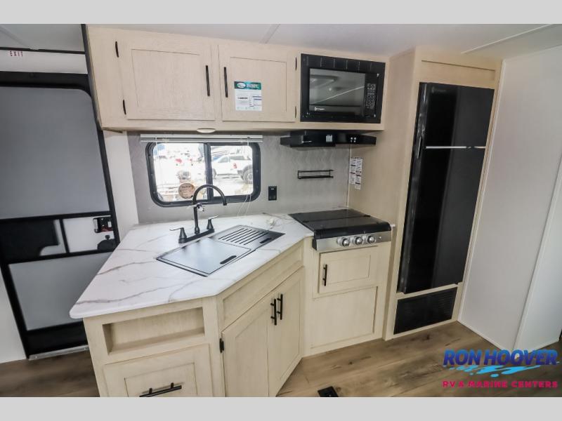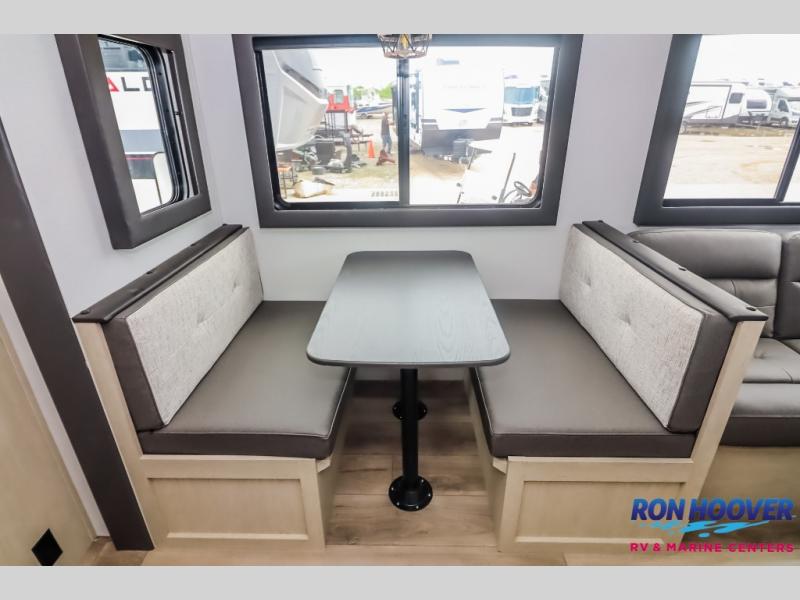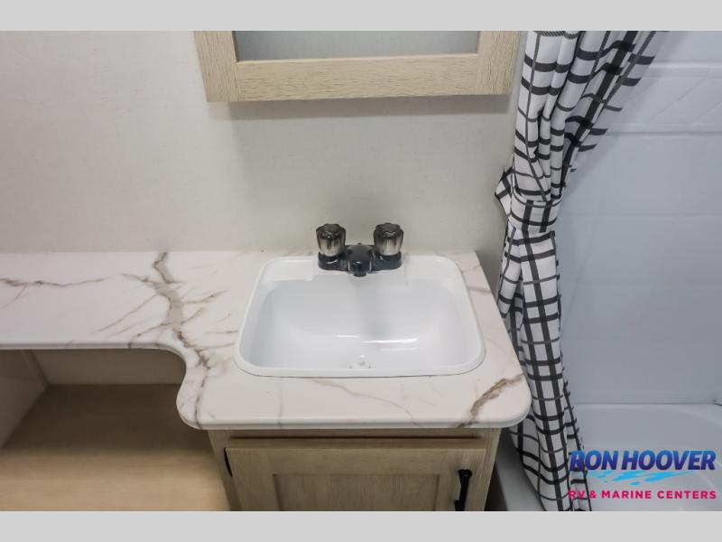 In any Northern Spirit DLX travel trailer by Coachmen, you will find quality craftsmanship along with an affordable price tag. These units each feature four stabilizer jacks to make setting up easier and an enclosed underbelly for added protection as you travel. The Base Camp Package provides each unit with black tank flush, a monitor panel for quick access to the functions of your unit, a 13.5K A/C unit, and a tankless water heater for added convenience. Inside, you'll find seamless countertops, sink covers, a portable Bluetooth speaker, and more comforts!