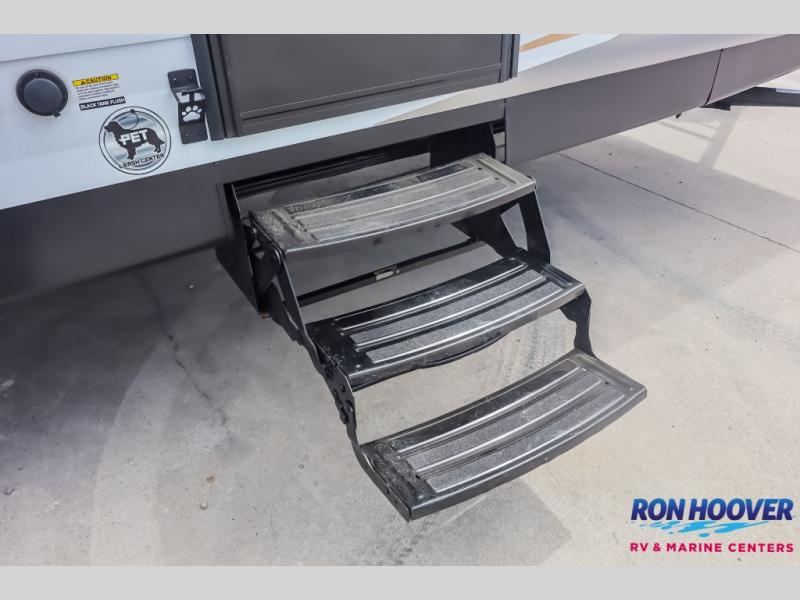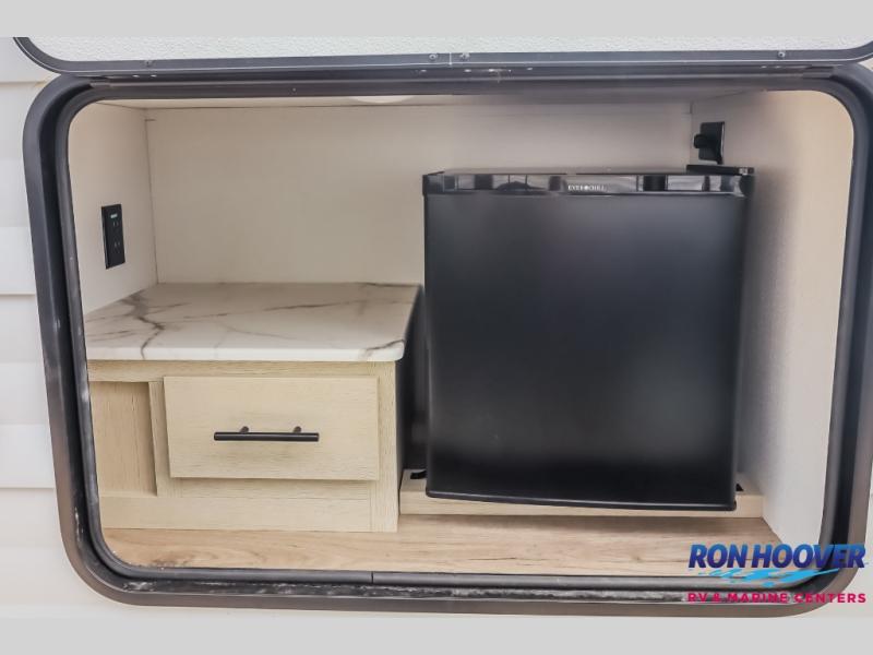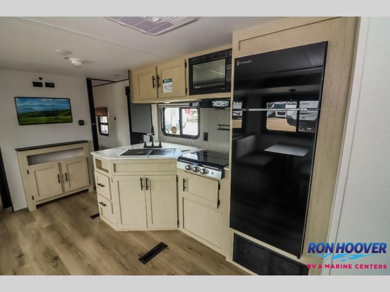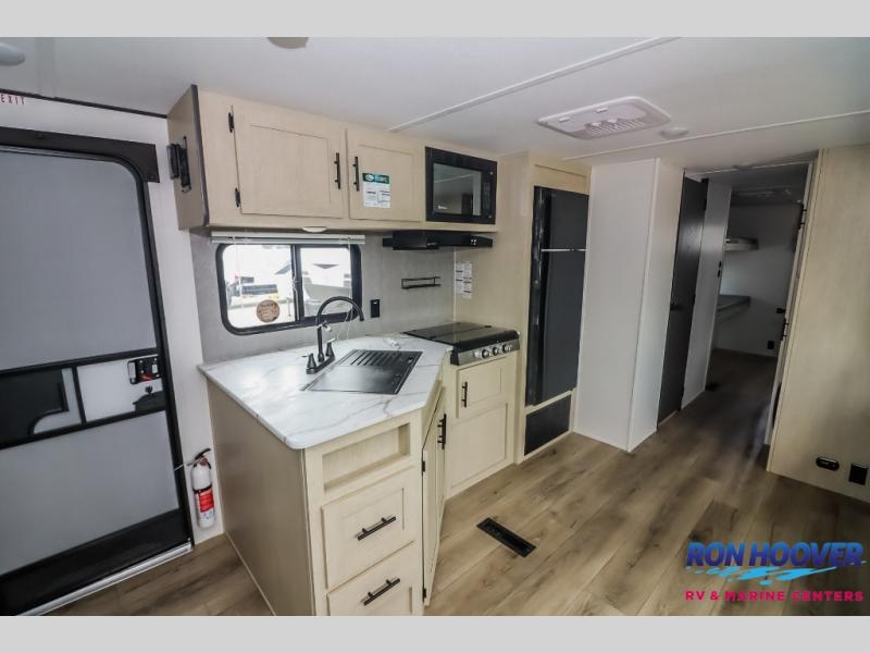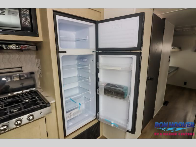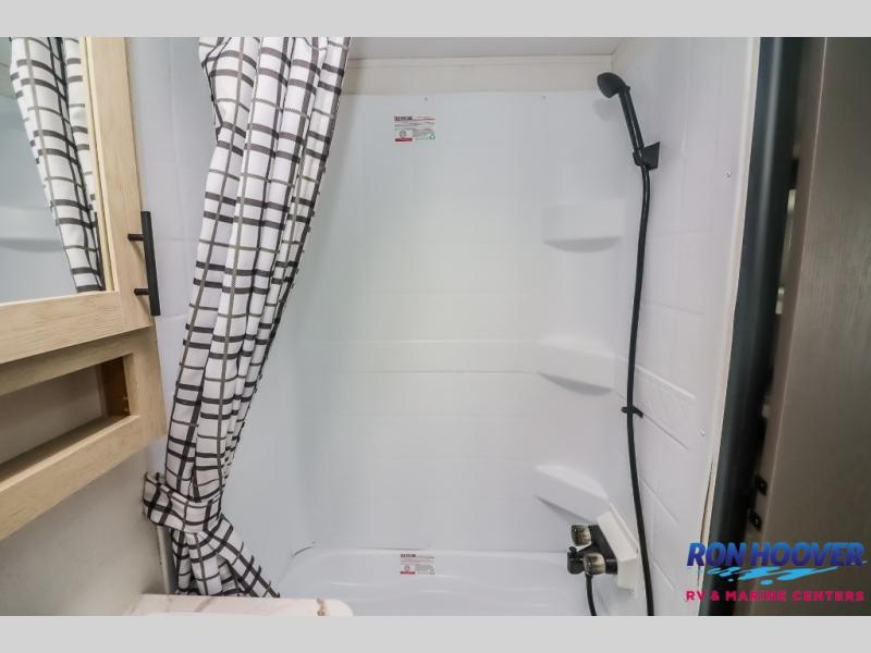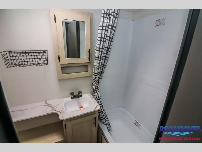 There are a set of 38" x 74" bunks and a set of 26" x 74" bunks in this trailer for lots of sleeping space! This bunkroom also includes a slide out for more space, and you can choose the optional double suite with a 54" x 74" bed if you don't need the bunks. The kitchen is fully equipped for your camping trips featuring a three burner cooktop, an overhead microwave oven, a large sink, and plenty of storage space. You will also love the pantry for all of your canned goods and snacks. The bath features a 24" x 40" shower, toilet, and vanity/sink. In the front of this unit, a private bedroom provides a quiet retreat from the rest of the unit with dual entry doors, and you'll appreciate having dual bedroom wardrobes to keep your clothes organized. Outside, enjoy pass-through storage for all of your outdoor camping gear plus more.