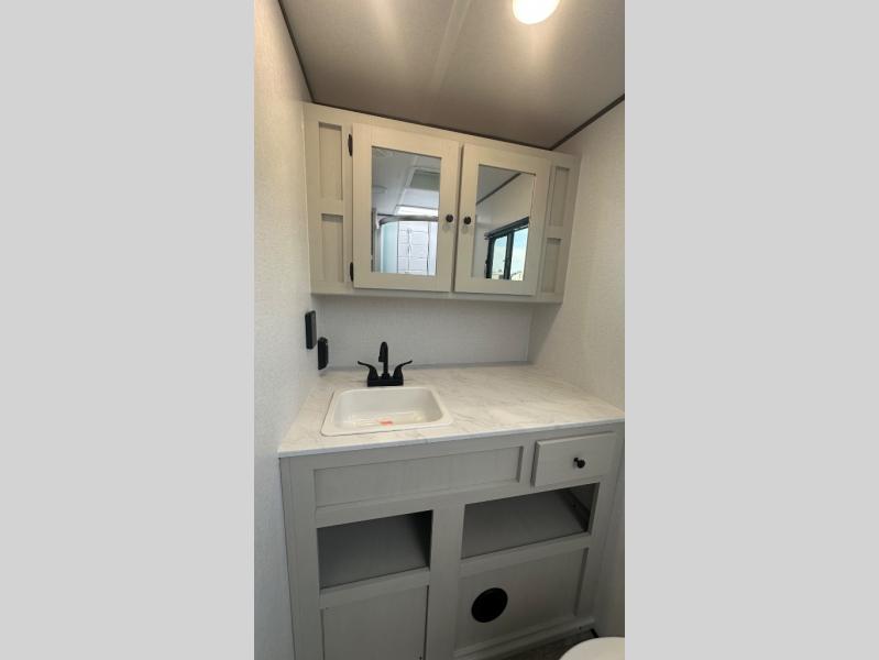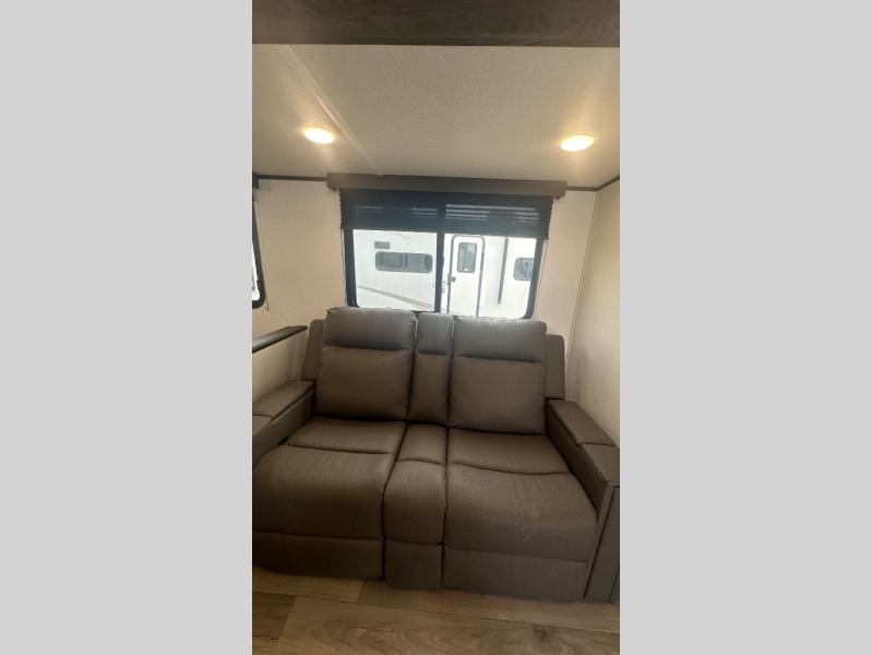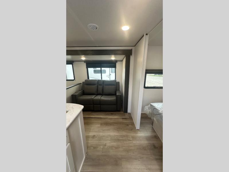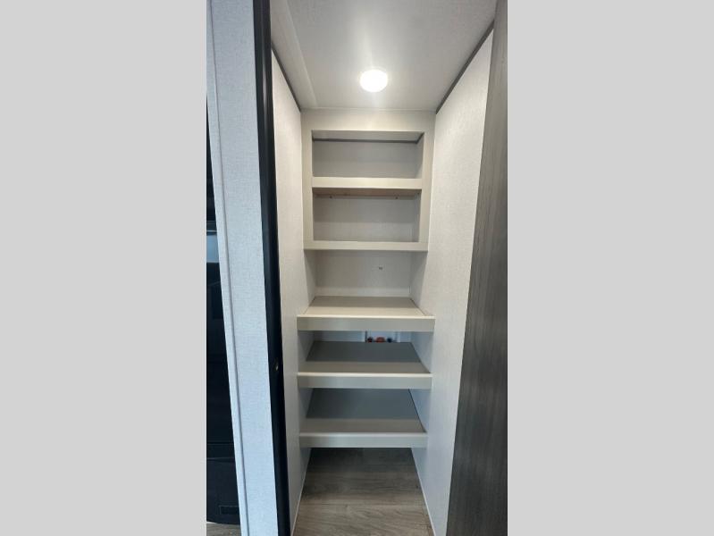 There are a set of 38" x 74" bunks and a set of 26" x 74" bunks in this trailer for lots of sleeping space! This bunkroom also includes a slide out for more space, and you can choose the optional double suite with a 54" x 74" bed if you don't need the bunks. The kitchen is fully equipped for your camping trips featuring a three burner cooktop, an overhead microwave oven, a large sink, and plenty of storage space. You will also love the pantry for all of your canned goods and snacks. The bath features a 24" x 40" shower, toilet, and vanity/sink. In the front of this unit, a private bedroom provides a quiet retreat from the rest of the unit with dual entry doors, and you'll appreciate having dual bedroom wardrobes to keep your clothes organized. Outside, enjoy pass-through storage for all of your outdoor camping gear plus more.