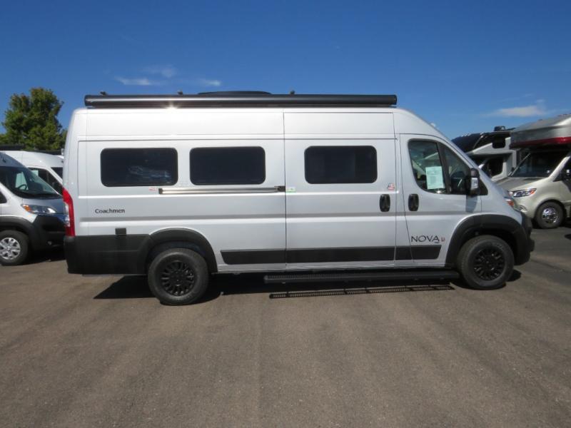 Each Nova Class B gas motorhome by Coachmen features Sumo Spring front and rear suspension for a smooth ride. Each unit is built on a Ram ProMaster 3500 chassis, and is powered by a 3.6L V6, 24 valve engine with 280 HP. You will appreciate the innovative Firefly multiplex system, the Sure Level tank sensors, and the 3 Group 31, 115AH AGM batteries for added power, as well as a new 24" LED Smart TV to help keep you entertained on long trips. Inside, you'll find solid hardwood cabinetry, a fiberglass shower verses the competitors ABS shower, a remote control MaxxAir fan with a rain sensor, and many more comforts to make you feel right at home. There is also a Truma Aventa 13,500 BTU A/C with three speeds, a dehumidifier, and night mode to ensure your comfort throughout each trip!