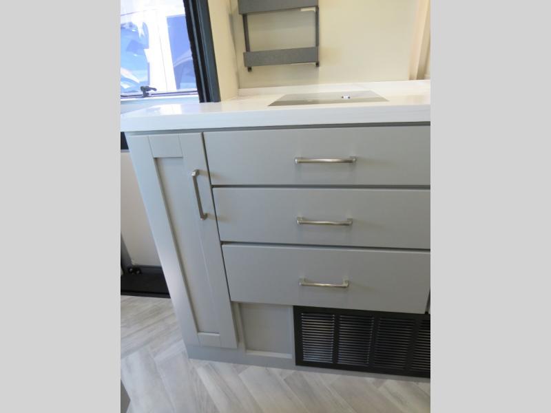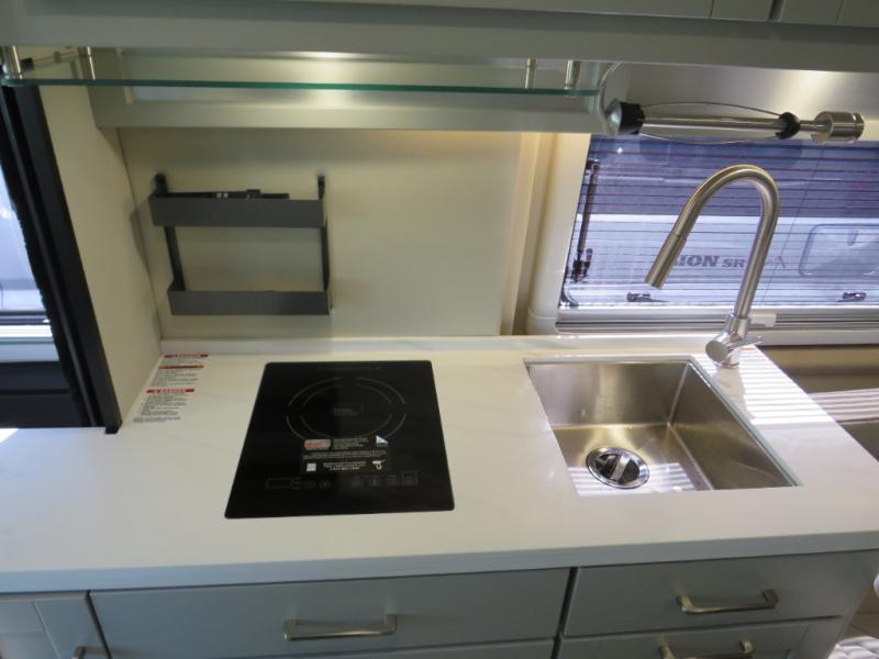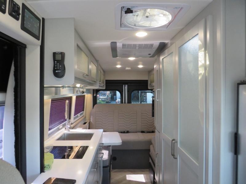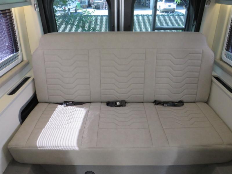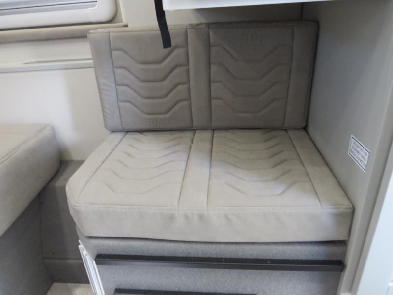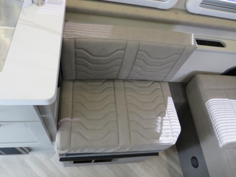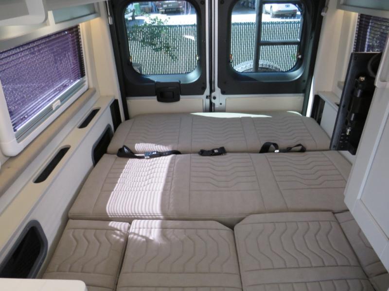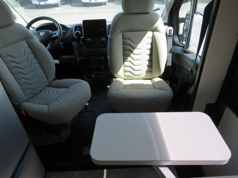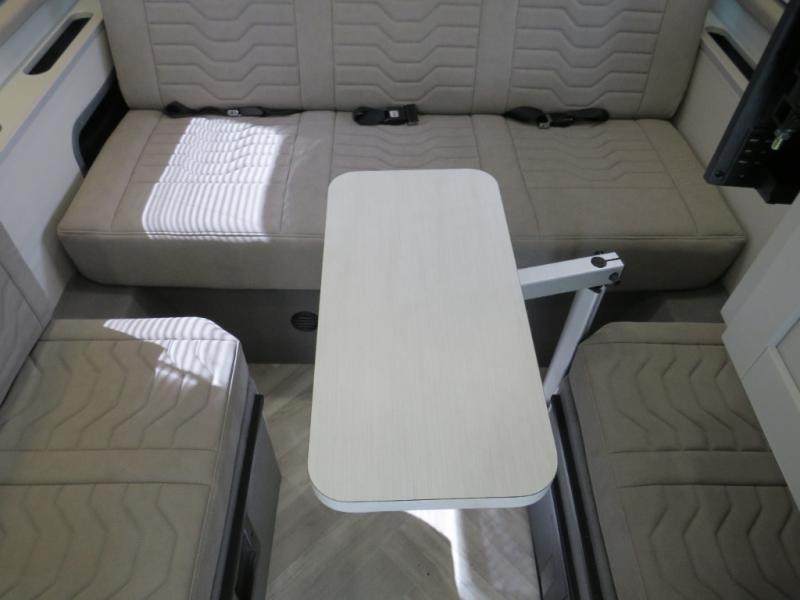 Grab your honey and head to your favorite camping spot in this cozy camper van. Once you park for the day, you can swivel the captain's seats around and enjoy coffee at the removable cockpit table. Lunch can be made on the induction cooktop, and the cold ingredients can go back in the 7.3 cu. ft. refrigerator. The convenient wet bath allows you to freshen up after a hike, and the rear lay-flat power sofa will provide comfortable sleeping space when you're ready to turn in for the night. There are also two jump seats and a lagun table if you want to say up and play a game of cards!