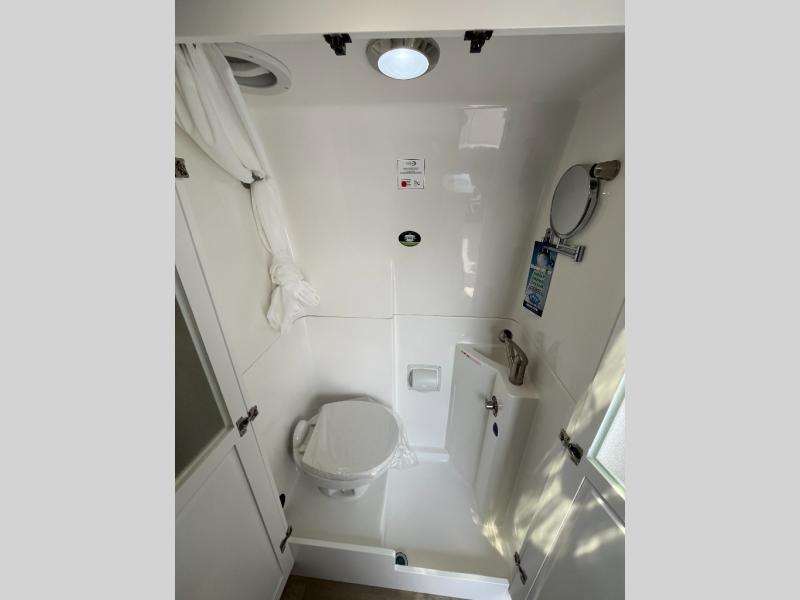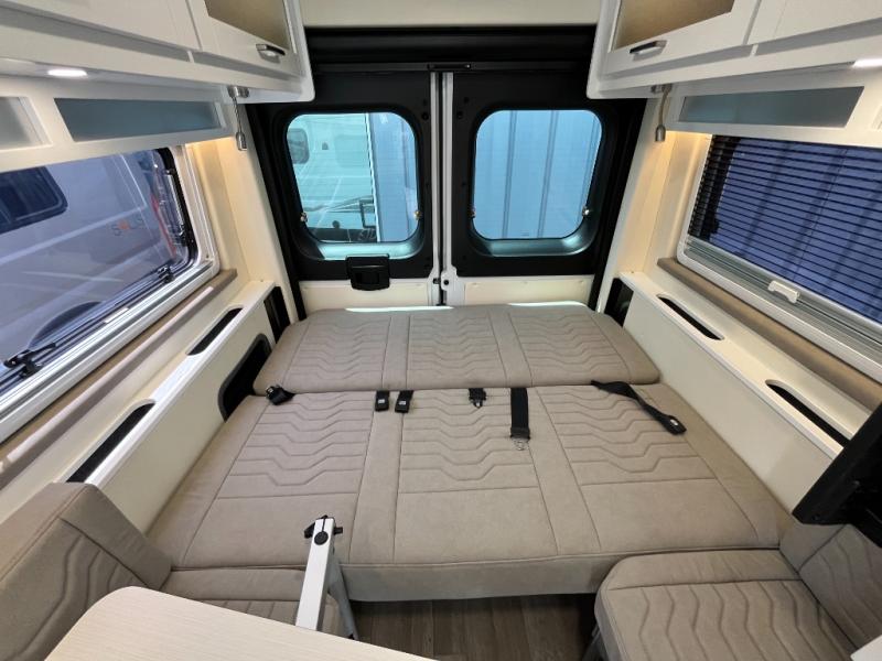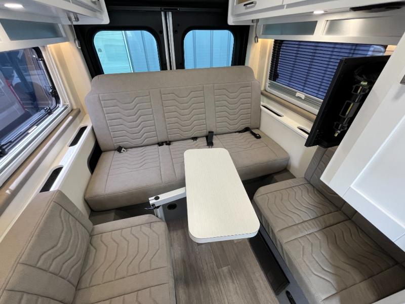 Grab your honey and head to your favorite camping spot in this cozy camper van. Once you park for the day, you can swivel the captain's seats around and enjoy coffee at the removable cockpit table. Lunch can be made on the induction cooktop, and the cold ingredients can go back in the 7.3 cu. ft. refrigerator. The convenient wet bath allows you to freshen up after a hike, and the rear lay-flat power sofa will provide comfortable sleeping space when you're ready to turn in for the night. There are also two jump seats and a lagun table if you want to say up and play a game of cards!