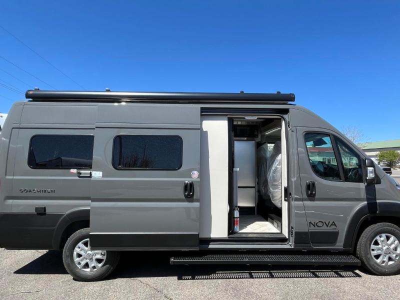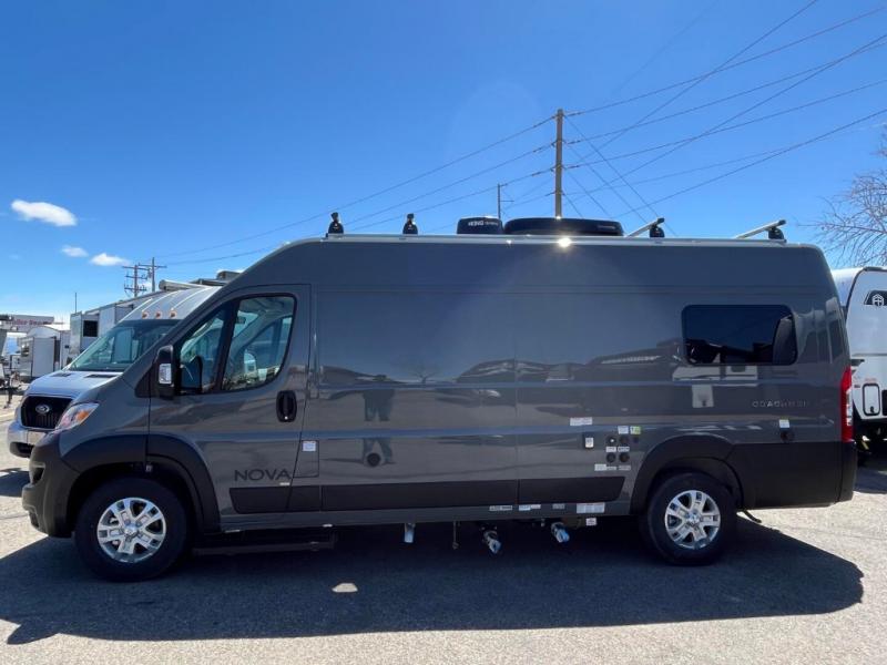 Each Nova Class B gas motorhome by Coachmen features Sumo Spring front and rear suspension for a smooth ride. Each unit is built on a Ram ProMaster 3500 chassis, and is powered by a 3.6L V6, 24 valve engine with 280 HP. You will appreciate the innovative Firefly multiplex system, the Sure Level tank sensors, and the 3 Group 31, 115AH AGM batteries for added power, as well as a new 24" LED Smart TV to help keep you entertained on long trips. Inside, you'll find solid hardwood cabinetry, a fiberglass shower verses the competitors ABS shower, a remote control MaxxAir fan with a rain sensor, and many more comforts to make you feel right at home. There is also a Truma Aventa 13,500 BTU A/C with three speeds, a dehumidifier, and night mode to ensure your comfort throughout each trip! An optional Li Lithium Battery System can be added which features a 640 amp-hour lithium battery, a Bluetooth battery management system, a Xantrex XC Pro 3,000W inverter/charger, and more features for off-grid capability!