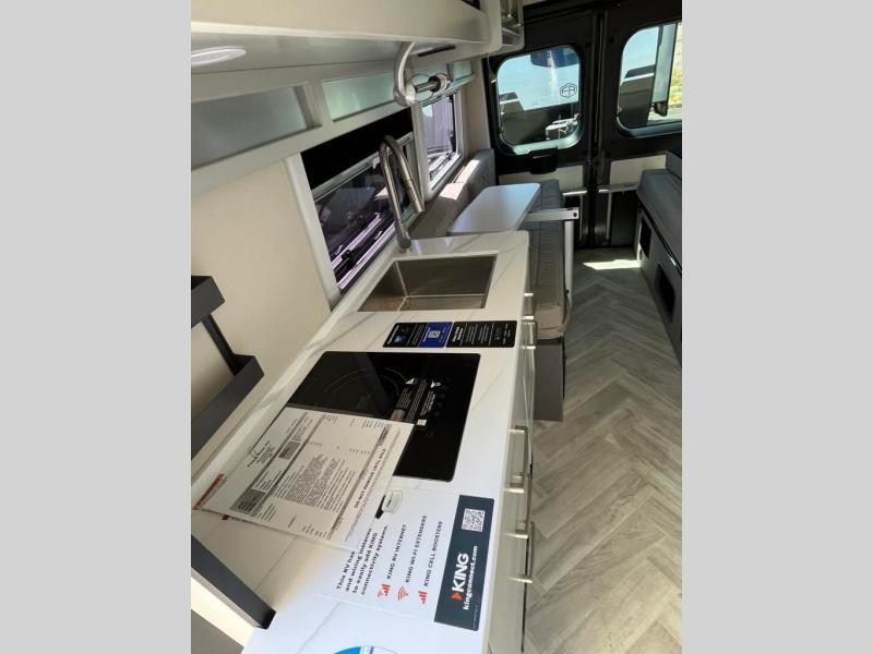 Hit the road and enjoy each journey in this Nova Class B coach. Once you park for the day, you can swivel the captain's seats around and enjoy coffee at the removable cockpit table. Lunch can be made on the induction cooktop, and the cold ingredients can go back in the 7.3 cu. ft. refrigerator. The convenient wet bath allows you to freshen up after a day exploring, and when you're ready to turn in for the night you can choose from either two 75" x 26" beds, or combine them to create a 75" x 73" bed instead. You will find ample storage in overhead cabinets along each side, beneath the bed, plus there is an extra wardrobe on the roadside as well.