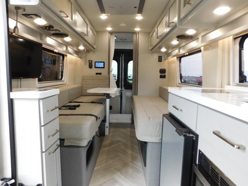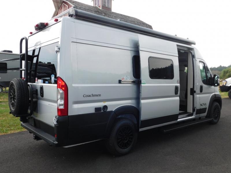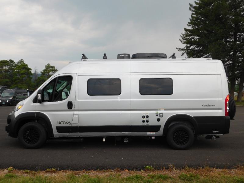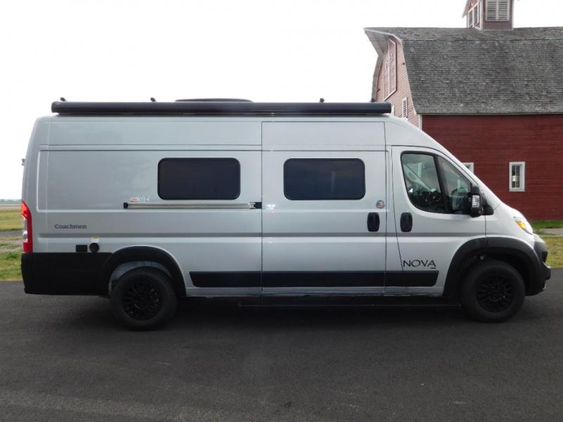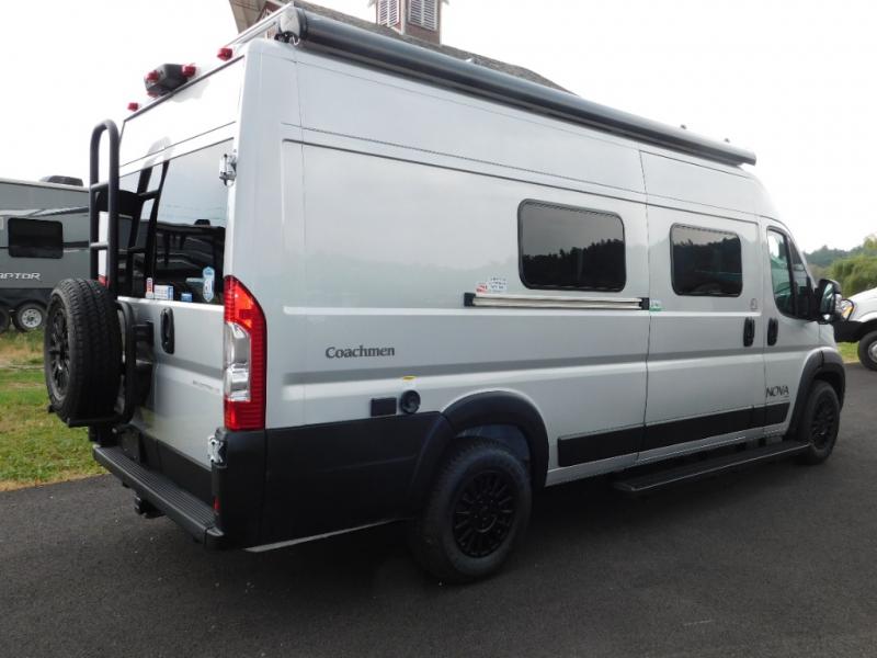 Each Nova Class B gas motorhome by Coachmen features Sumo Spring front and rear suspension for a smooth ride. Each unit is built on a Ram ProMaster 3500 chassis, and is powered by a 3.6L V6, 24 valve engine with 280 HP. You will appreciate the innovative Firefly multiplex system, the Sure Level tank sensors, and the 3 Group 31, 115AH AGM batteries for added power, as well as a new 24" LED Smart TV to help keep you entertained on long trips. Inside, you'll find solid hardwood cabinetry, a fiberglass shower verses the competitors ABS shower, a remote control MaxxAir fan with a rain sensor, and many more comforts to make you feel right at home. There is also a Truma Aventa 13,500 BTU A/C with three speeds, a dehumidifier, and night mode to ensure your comfort throughout each trip!