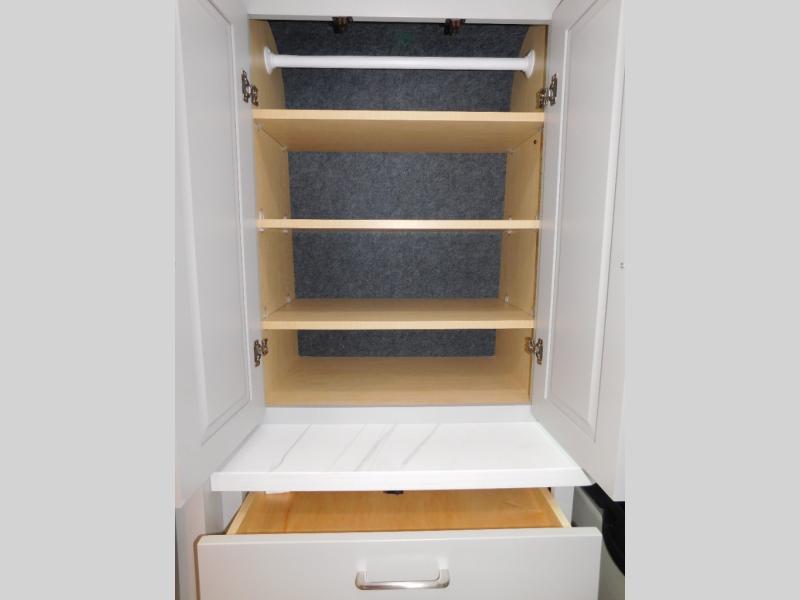 This camper van with a full rear bath will meet your needs surprisingly well. Two twin beds will provide comfortable sleeping space each night, and the lagun table in between the beds will be the perfect place to enjoy breakfast together. There is a bath wardrobe to keep your clothes tidy, plus you'll find overhead cabinets above the beds and additional storage just as you enter the coach for your belongings. This coach also includes swivel captain's seats with a removable table for even more seating and dining space.
