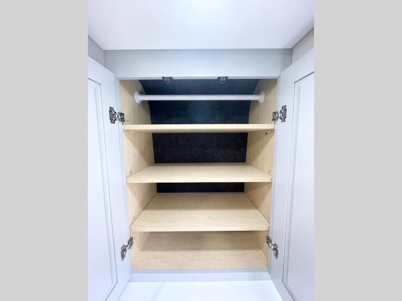 This camper van with a full rear bath will meet your needs surprisingly well. Two twin beds will provide comfortable sleeping space each night, and the lagun table in between the beds will be the perfect place to enjoy breakfast together. There is a bath wardrobe to keep your clothes tidy, plus you'll find overhead cabinets above the beds and additional storage just as you enter the coach for your belongings. This coach also includes swivel captain's seats with a removable table for even more seating and dining space.