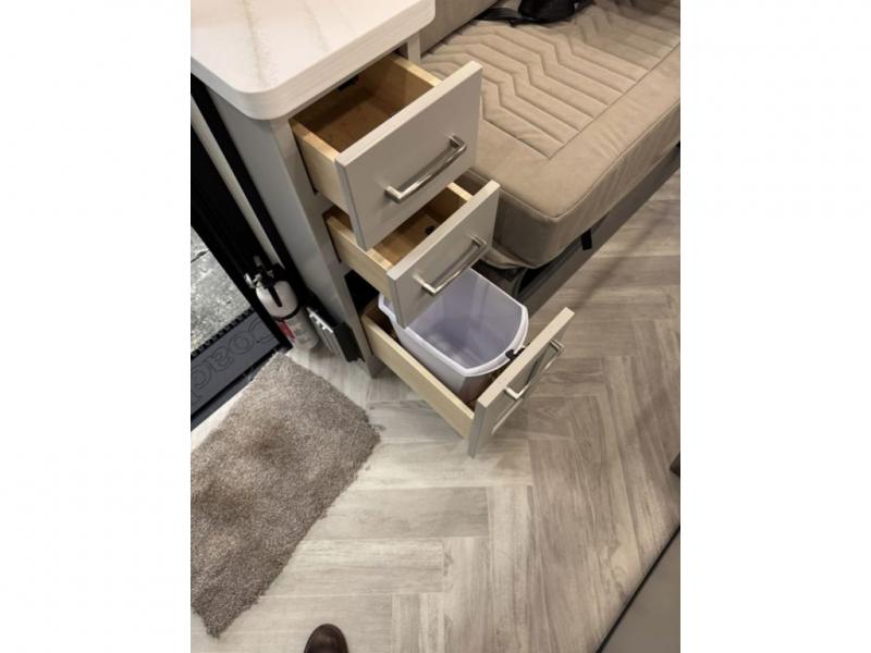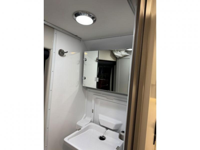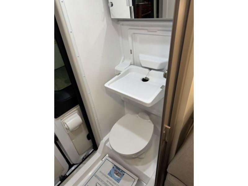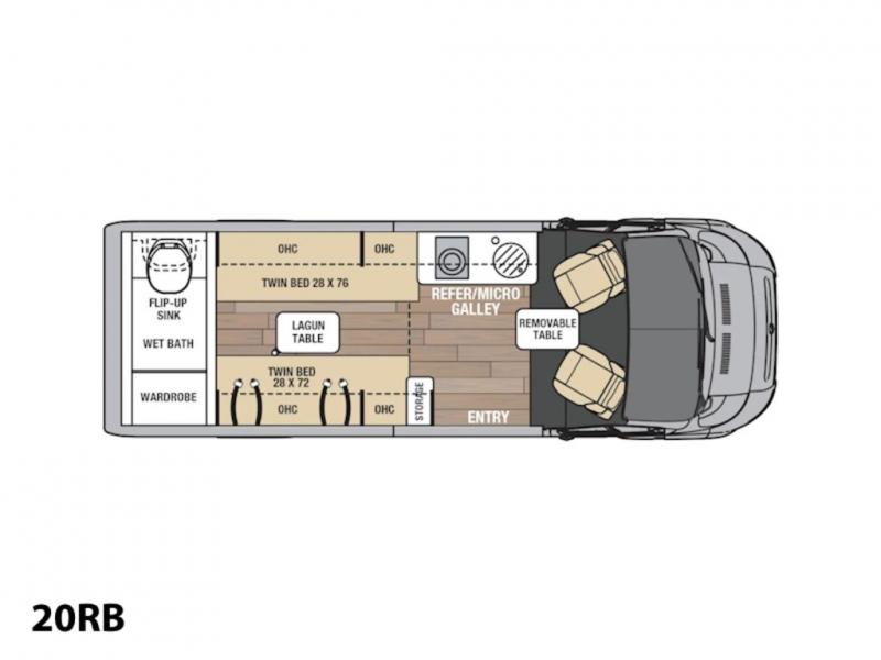 This camper van with a full rear bath will meet your needs surprisingly well. Two twin beds will provide comfortable sleeping space each night, and the lagun table in between the beds will be the perfect place to enjoy breakfast together. There is a bath wardrobe to keep your clothes tidy, plus you'll find overhead cabinets above the beds and additional storage just as you enter the coach for your belongings. This coach also includes swivel captain's seats with a removable table for even more seating and dining space.