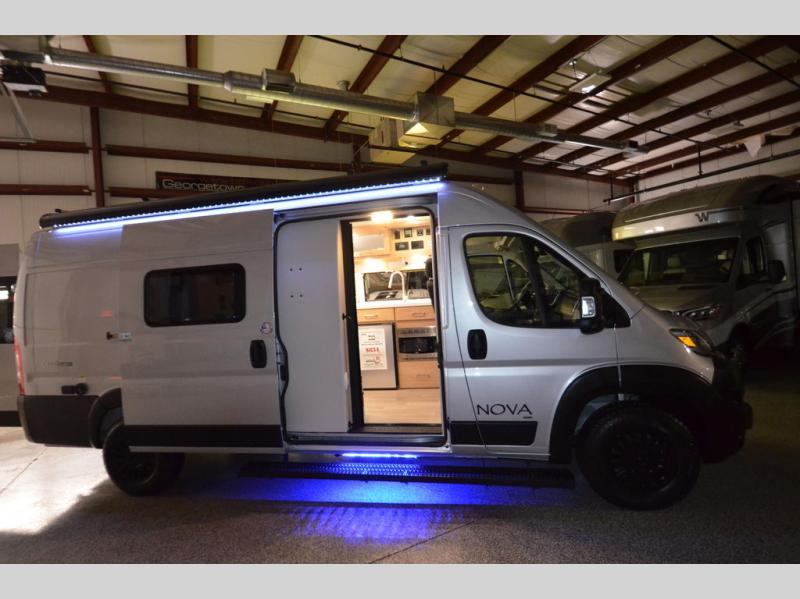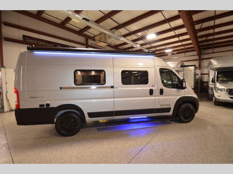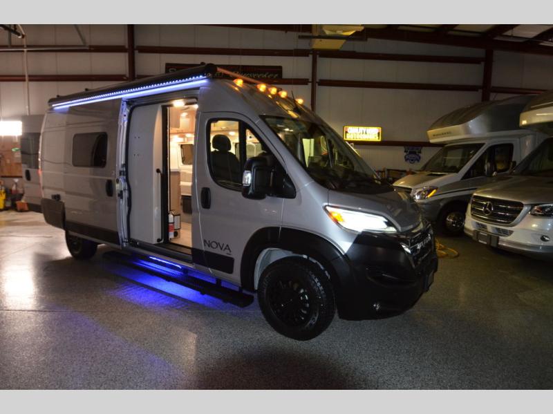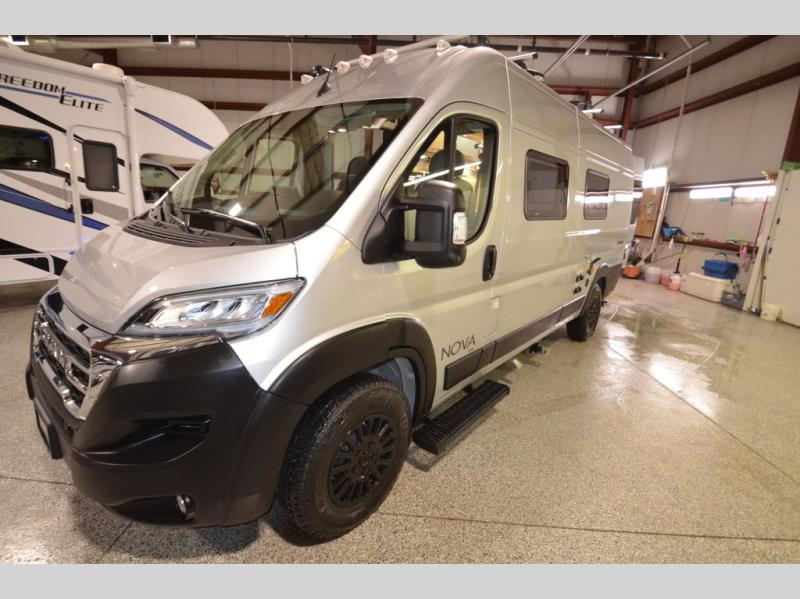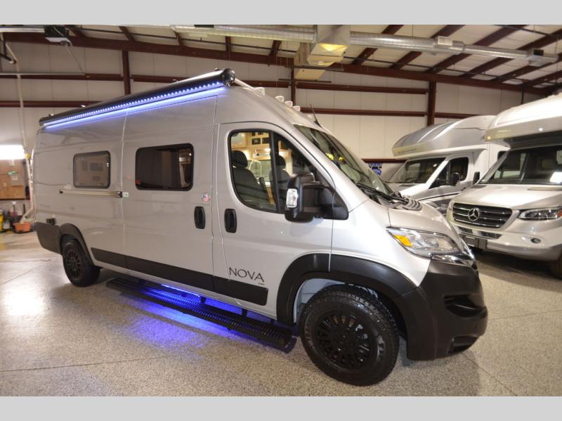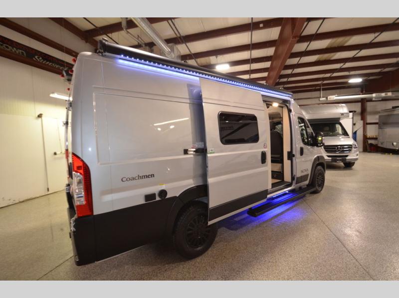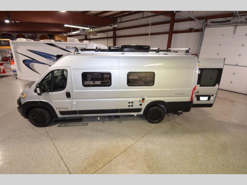 Each Nova Class B gas motorhome by Coachmen features Sumo Spring front and rear suspension for a smooth ride. Each unit is built on a Ram ProMaster 3500 chassis, and is powered by a 3.6L V6, 24 valve engine with 280 HP. You will appreciate the innovative Firefly multiplex system, the Sure Level tank sensors, and the 3 Group 31, 115AH AGM batteries for added power, as well as a new 24" LED Smart TV to help keep you entertained on long trips. Inside, you'll find solid hardwood cabinetry, a fiberglass shower verses the competitors ABS shower, a remote control MaxxAir fan with a rain sensor, and many more comforts to make you feel right at home. There is also a Truma Aventa 13,500 BTU A/C with three speeds, a dehumidifier, and night mode to ensure your comfort throughout each trip! An optional Li Lithium Battery System can be added which features a 640 amp-hour lithium battery, a Bluetooth battery management system, a Xantrex XC Pro 3,000W inverter/charger, and more features for off-grid capability!