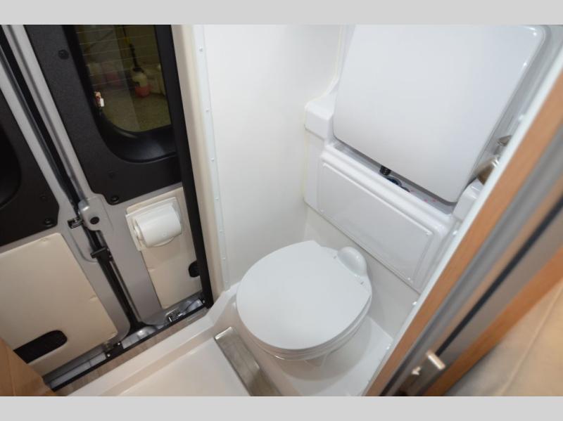 This camper van with a full rear bath will meet your needs surprisingly well. Two twin beds will provide comfortable sleeping space each night, and the lagun table in between the beds will be the perfect place to enjoy breakfast together. There is a bath wardrobe to keep your clothes tidy, plus you'll find overhead cabinets above the beds and additional storage just as you enter the coach for your belongings. This coach also includes swivel captain's seats with a removable table for even more seating and dining space.