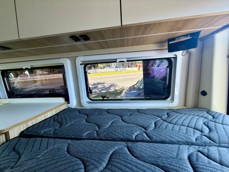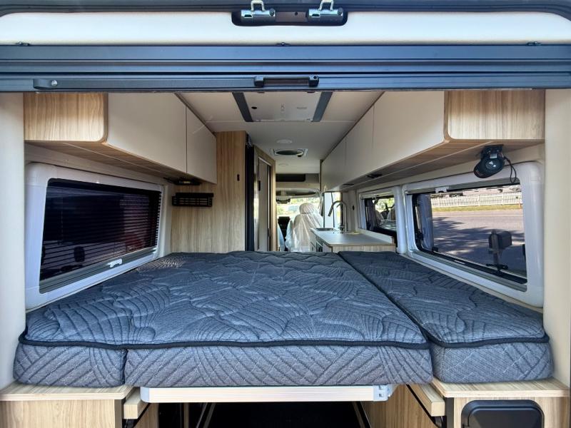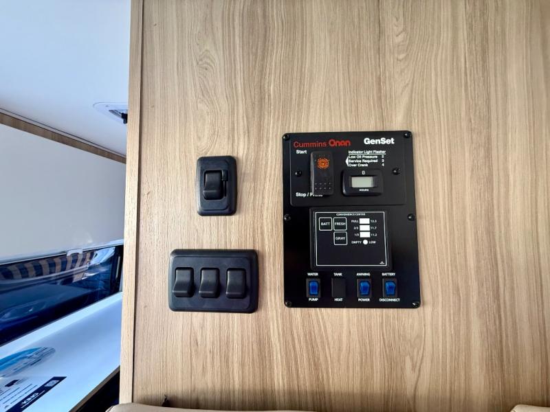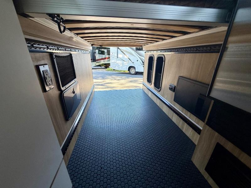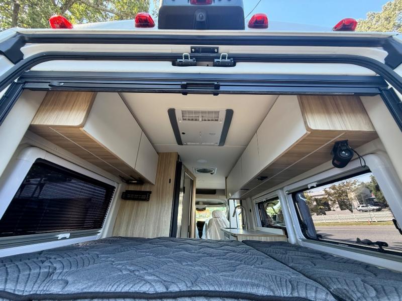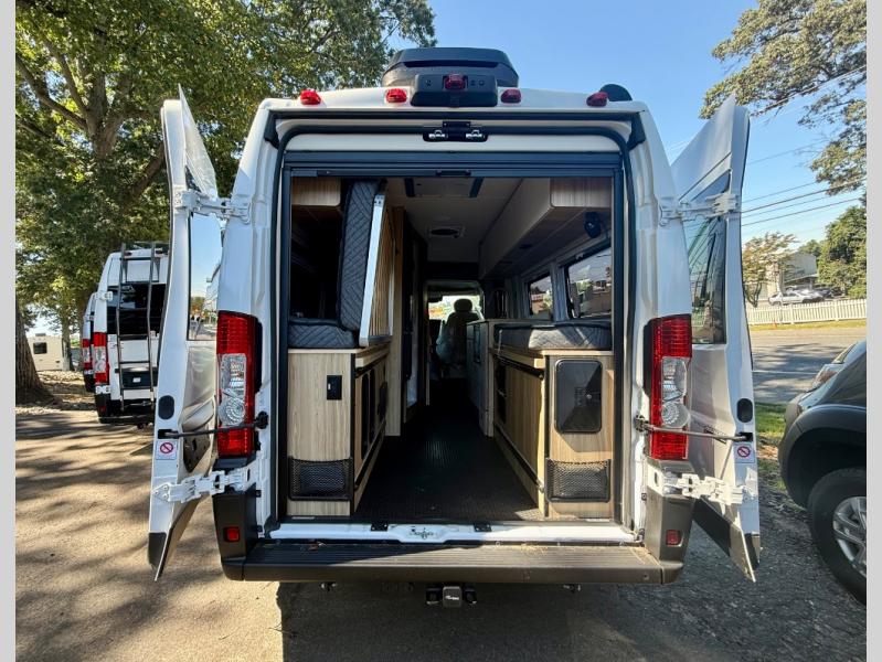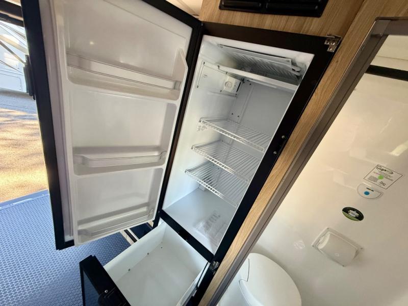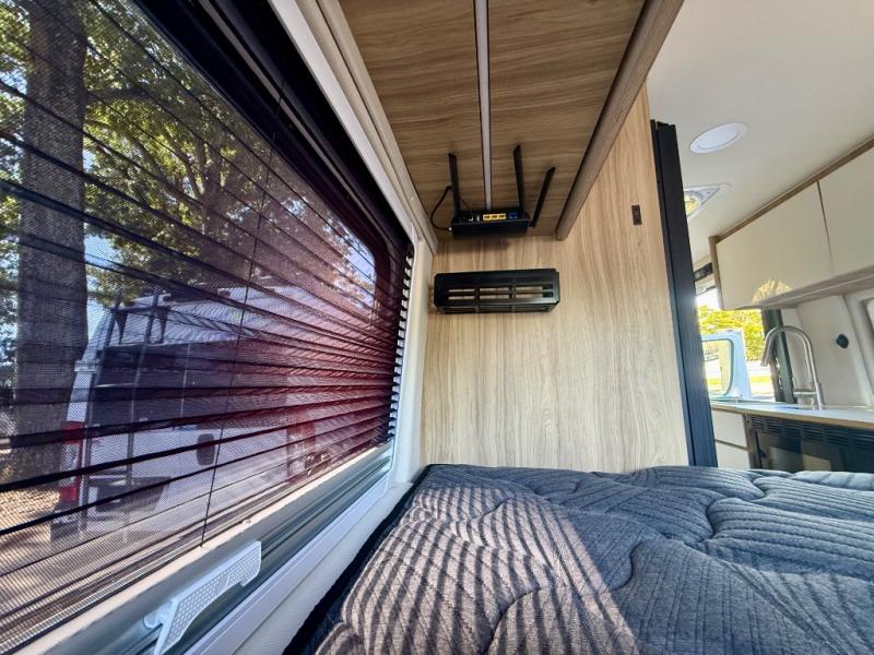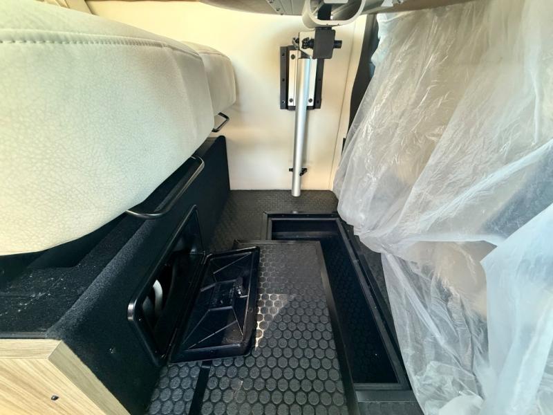 Start a new adventure across the states in this cozy coach! Once you arrive at the campground, you can make lunch on the induction cooktop or in the air fryer/convection microwave. There is also a 7.3 cu. ft. refrigerator with a pull-out freezer drawer to keep your food fresh. You'll find multiple overhead cabinets to keep your belongings tucked out of the way, and the compact wet bath will let you freshen up after a day outdoors. Up front, you'll find two captains seats plus two additional cab seats with a removable table and storage boxes. The 56" x 77" Murphy bed provides versatile sleeping space when you're ready to get some shut-eye. If you're needing additional sleeping space, you can choose the optional pop-top. When the optional pop-top is chosen, the standard Truma A/C is changed out for a Coleman Mach 10 A/C; see dealer for more details.