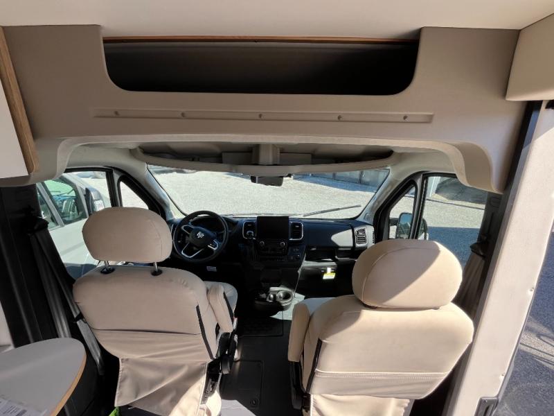 Start a new adventure across the states in this cozy coach! Once you arrive at the campground, you can make lunch on the induction cooktop or in the air fryer/convection microwave. There is also a 7.3 cu. ft. refrigerator with a pull-out freezer drawer to keep your food fresh. You'll find multiple overhead cabinets to keep your belongings tucked out of the way, and the compact wet bath will let you freshen up after a day outdoors. Up front, you'll find two captains seats plus two additional cab seats with a removable table and storage boxes. The 56" x 77" Murphy bed provides versatile sleeping space when you're ready to get some shut-eye. If you're needing additional sleeping space, you can choose the optional pop-top. When the optional pop-top is chosen, the standard Truma A/C is changed out for a Coleman Mach 10 A/C; see dealer for more details.