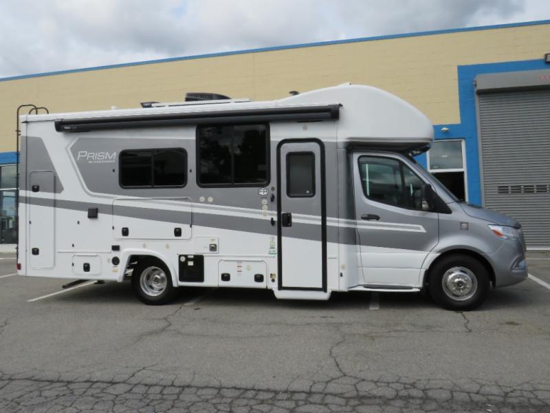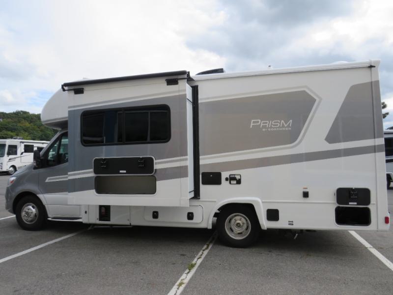 With any of the Prism Elite Class C diesel motorhomes, the Coachmen legacy of upscale luxury with Mercedes-Benz drivability is found throughout. With the aerodynamic and stylish molded fiberglass front and rear caps plus three full body paint choices, you are sure to turn heads as you travel to your destination. There is also solar prep outside, along with exterior storage and an armless awning. The interior provides solid surface countertops, large closets to store your things, day/night shades for added privacy, plus a soft touch ceiling. A Truma Aqua Go on-demand water heater will provide endless hot showers and the Even Cool A/C ducting system will keep you cool all summer long. Choose a reliable and luxurious Prism Elite today!