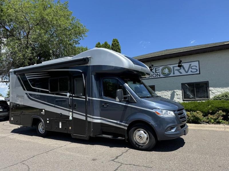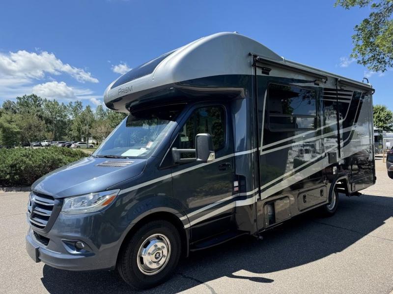 With any of the Prism Elite Class C diesel motorhomes, the Coachmen legacy of upscale luxury with Mercedes-Benz drivability is found throughout. With the aerodynamic and stylish molded fiberglass front and rear caps plus three full body paint choices, you are sure to turn heads as you travel to your destination. There is also solar prep outside, along with exterior storage and an armless awning. The interior provides solid surface countertops, large closets to store your things, day/night shades for added privacy, plus a soft touch ceiling. A Truma Aqua Go on-demand water heater will provide endless hot showers and the Even Cool A/C ducting system will keep you cool all summer long. Choose a reliable and luxurious Prism Elite today!