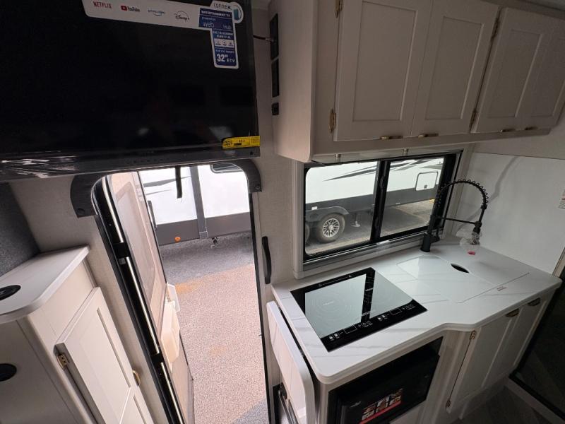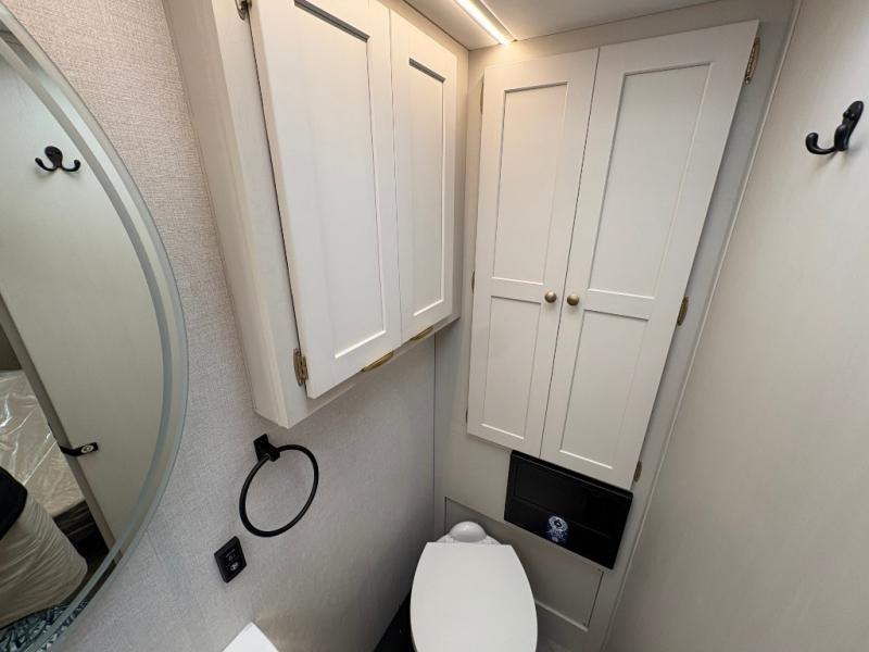 You'll love traveling in this luxury coach with friends or family. Once you stop for the day, you can make dinner on the two burner induction cooktop, grab a cold drink from the refrigerator, and relax on the sofa with recliners. The master bedroom includes a queen bed slide out, dual wardrobes, and a workstation if you need to get some work done. And don't overlook the full rear bath, complete with a 24" x 36" shower, toilet, sink, and linen closet for clean towels.