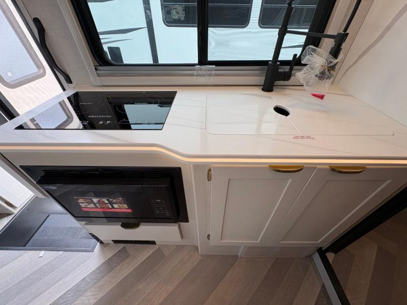With any of the Prism Elite Class C diesel motorhomes, the Coachmen legacy of upscale luxury with Mercedes-Benz drivability is found throughout. With the aerodynamic and stylish molded fiberglass front and rear caps plus three full body paint choices, you are sure to turn heads as you travel to your destination. There is also solar prep outside, along with exterior storage and an armless awning. The interior provides solid surface countertops, large closets to store your things, day/night shades for added privacy, plus a soft touch ceiling. A Truma Aqua Go on-demand water heater will provide endless hot showers and the Even Cool A/C ducting system will keep you cool all summer long. Choose a reliable and luxurious Prism Elite today!