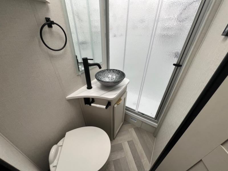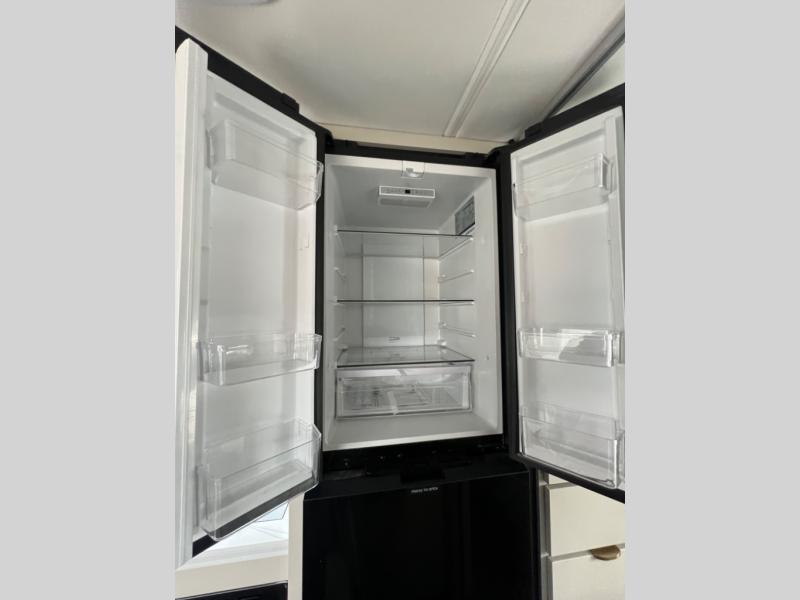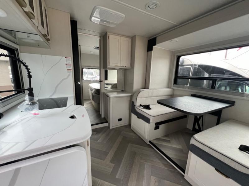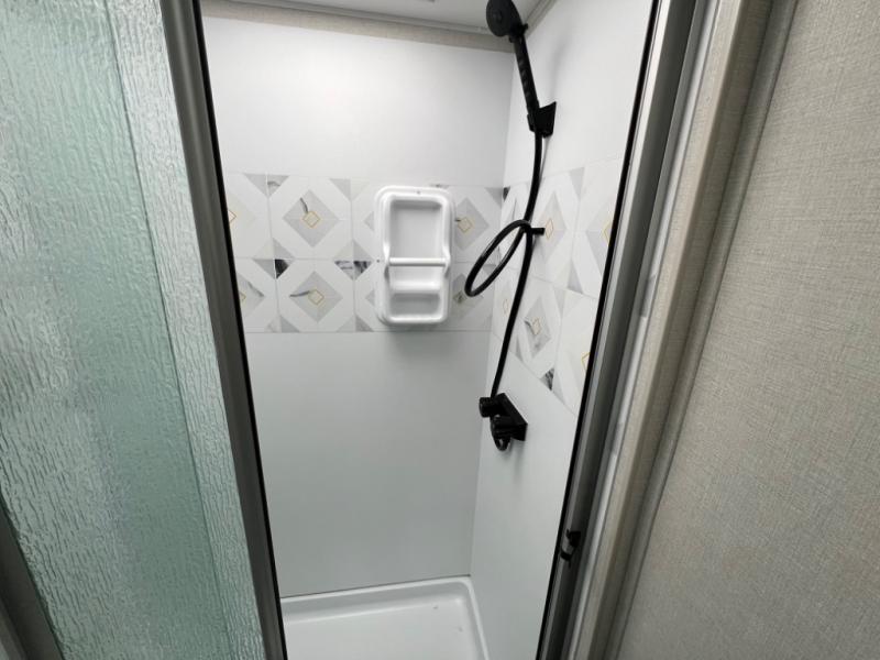 This Prism Select Class C diesel motorhome is the perfect blend between value and luxury! There are large closets on the interior to make it easy for you to keep your belongings stored away, and the rear corner bedroom has an RV queen bed slide for some extra space as you walk around the bedroom. There is additional sleeping space within the 44" x 76" dinette and 36" x 76" bunk above the cab, and the kitchen has a countertop extension which will come in handy when you need more prepping space.