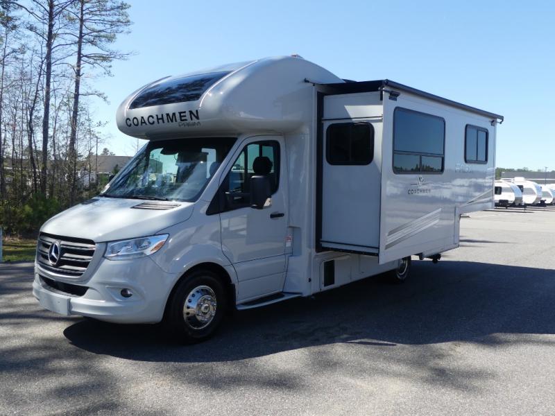 There is much to love about each one of these Coachmen Prism Select Class C diesel motorhomes, starting with the Mercedes-Benz chassis that is sure to get you where you wish to go. You will also appreciate the CrossFlex roof membrane, an Azdel "SuperLite" substrate with aluminum framing to resist dry rot, and the 2" vacuum-bond laminated sidewalls are the thickest Azdel in its class. You will love the unique floorplan choices, thermofoil countertops, large closets, large sliding windows, and the Even Cool AC ducting system to keep you comfortable during the warm months. Come find your favorite one today!