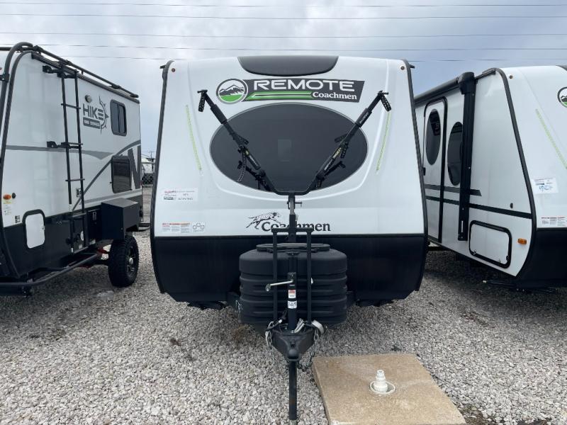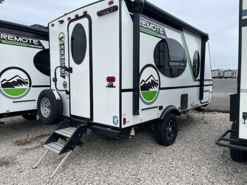 Any Remote travel trailer by Coachmen RV was designed with getting you out to explore in mind. These cute but mighty campers will easily allow you to enjoy some downtime from every day life. With the Aluma-cage construction including a vacuum-bonded laminated roof, and dual Azdel/fiberglass walls, your Remote trailer is not only sturdy but will be easy to maintain. Four stabilizer jacks will have you feeling secure at your campsite, and the power awning with LED light will allow you to create an inviting outdoor space with protection from the elements to use both day and night. There is ample storage throughout the interior, plus plenty of exterior storage as well. The outdoor griddle gives you cooking options, and the magnetic door latches on exterior storage compartments will keep your gear secure!