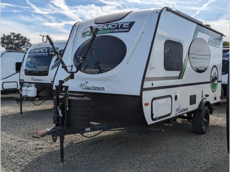 Any Remote travel trailer by Coachmen RV was designed with getting you out to explore in mind. These cute but mighty campers will easily allow you to enjoy some downtime from every day life. With the Aluma-cage construction including a vacuum-bonded laminated roof, and dual Azdel/fiberglass walls, your Remote trailer is not only sturdy but will be easy to maintain. Four stabilizer jacks will have you feeling secure at your campsite, and the power awning with LED light will allow you to create an inviting outdoor space with protection from the elements to use both day and night. There is ample storage throughout the interior, plus plenty of exterior storage as well. The outdoor griddle gives you cooking options, and the magnetic door latches on exterior storage compartments will keep your gear secure!