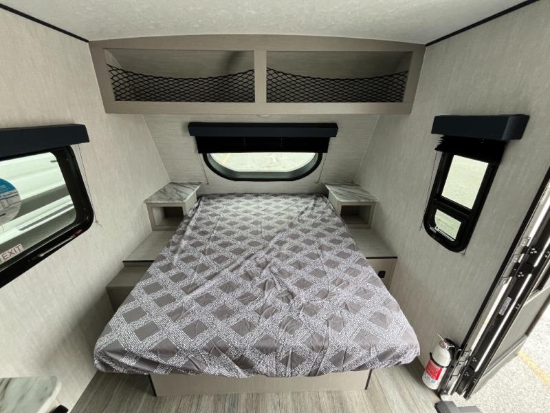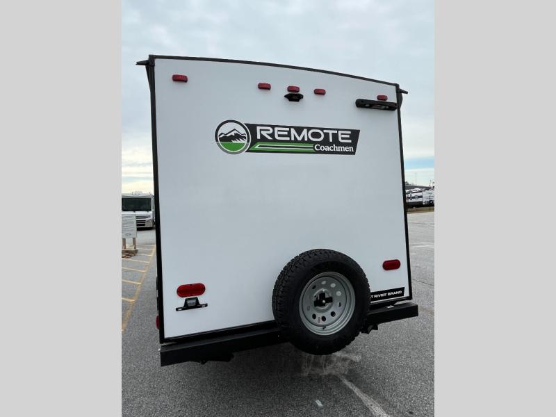 Any Remote travel trailer by Coachmen RV was designed with getting you out to explore in mind. These cute but mighty campers will easily allow you to enjoy some downtime from every day life. With the Aluma-cage construction including a vacuum-bonded laminated roof, and dual Azdel/fiberglass walls, your Remote trailer is not only sturdy but will be easy to maintain. Four stabilizer jacks will have you feeling secure at your campsite, and the power awning with LED light will allow you to create an inviting outdoor space with protection from the elements to use both day and night. There is ample storage throughout the interior, plus plenty of exterior storage as well. The outdoor griddle gives you cooking options, and the magnetic door latches on exterior storage compartments will keep your gear secure!