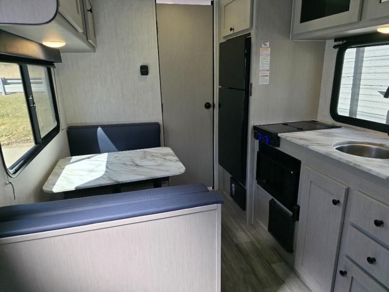 Enjoy camping in this cute Remote trailer features a rear full bath including shower with skylight for more natural lighting, a vanity with sink, and overhead storage. A 54" x 74" bed will be waiting for two of you to provide a comfortable night's rest, and if you have a third camper you can convert the booth dinette for sleeping for one more, or maybe two small children. Dine inside at the booth dinette and play card games at the table, or enjoy spending time outside under the 13' power awning with LED light. You can even cook burgers and dogs while enjoying nice weather with the help of the outdoor cast iron griddle.