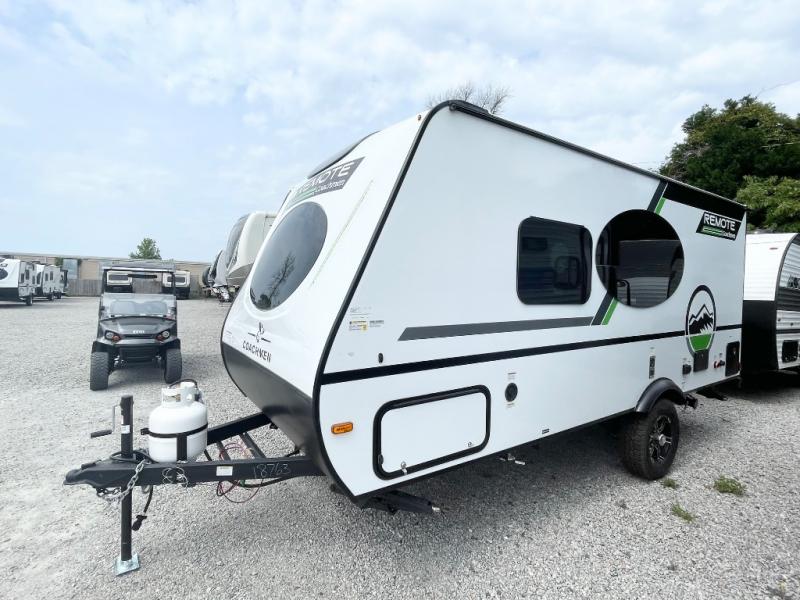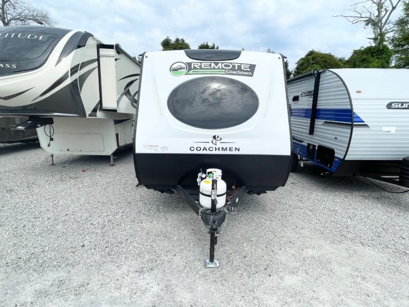 Any Remote travel trailer by Coachmen RV was designed with getting you out to explore in mind. These cute but mighty campers will easily allow you to enjoy some downtime from every day life. With the Aluma-cage construction including a vacuum-bonded laminated roof, and dual Azdel/fiberglass walls, your Remote trailer is not only sturdy but will be easy to maintain. Four stabilizer jacks will have you feeling secure at your campsite, and the power awning with LED light will allow you to create an inviting outdoor space with protection from the elements to use both day and night. There is ample storage throughout the interior, plus plenty of exterior storage as well. The outdoor griddle gives you cooking options, and the magnetic door latches on exterior storage compartments will keep your gear secure!