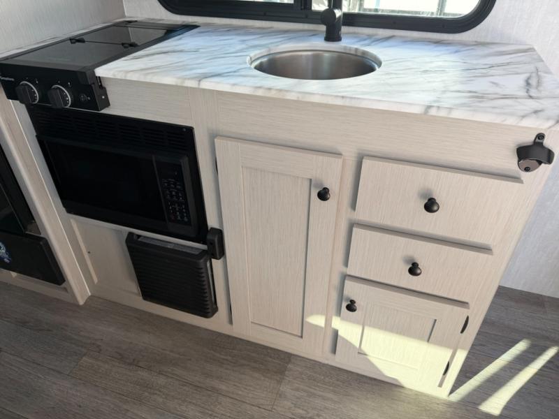 Any Remote travel trailer by Coachmen RV was designed with getting you out to explore in mind. These cute but mighty campers will easily allow you to enjoy some downtime from every day life. With the Aluma-cage construction including a vacuum-bonded laminated roof, and dual Azdel/fiberglass walls, your Remote trailer is not only sturdy but will be easy to maintain. Four stabilizer jacks will have you feeling secure at your campsite, and the power awning with LED light will allow you to create an inviting outdoor space with protection from the elements to use both day and night. There is ample storage throughout the interior, plus plenty of exterior storage as well. The outdoor griddle gives you cooking options, and the magnetic door latches on exterior storage compartments will keep your gear secure!