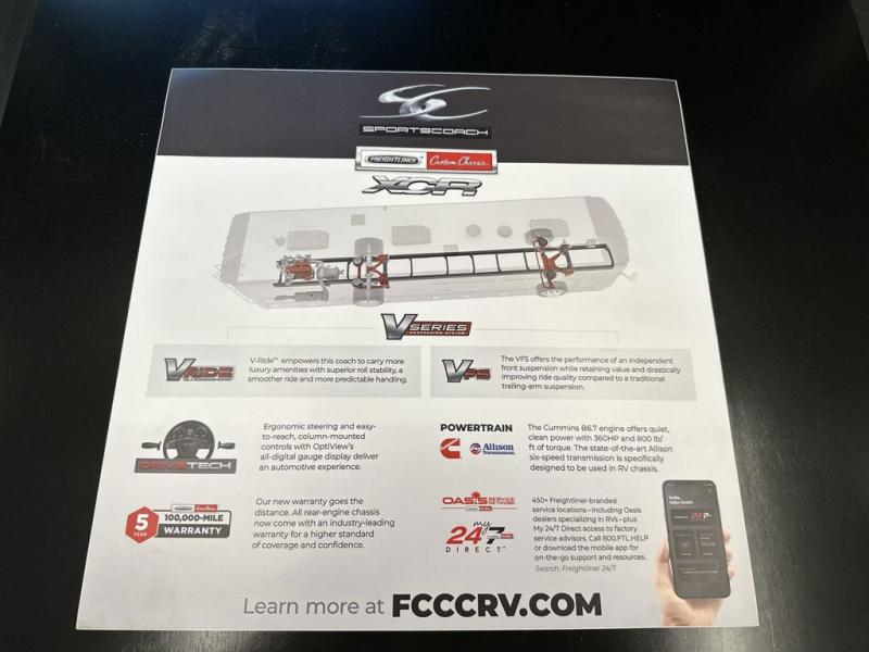 Start exploring new places with friends and family in one of these Coachmen RV Sportscoach RD Class A diesel motorhomes! They are built on a raised rail Freightliner chassis and powered by an ISB Cummins rear diesel engine with 360HP. The high gloss gel coat sidewalls come with Azdel superlite composite to not only keep your unit at a lighter weight, but also to keep it from rotting away. Enjoy panoramic views of your beautiful surroundings with the frameless tinted windows and the ease of getting into bed now with the true flat floor bedroom design eliminating unnecessary climbing over the engine cover. The chassis air suspension and air brakes provide a smooth ride to each destination, and the charging station inside will keep your electronics at 100% for your trips. Come find the one that best suits your needs today!