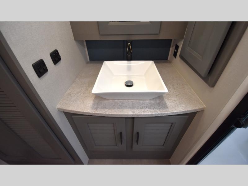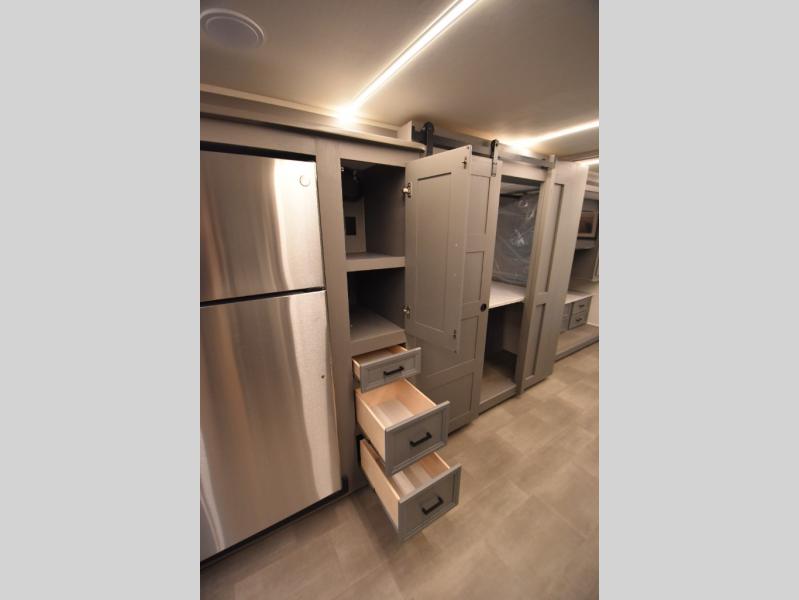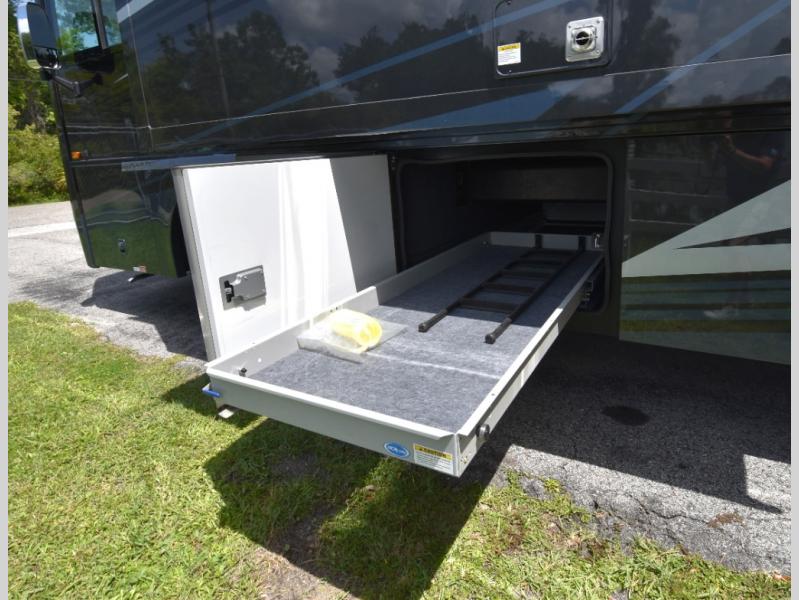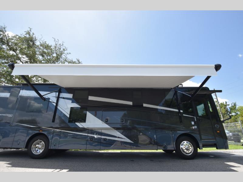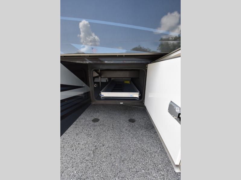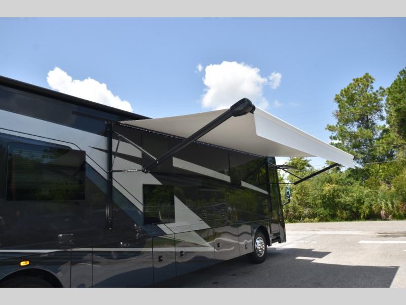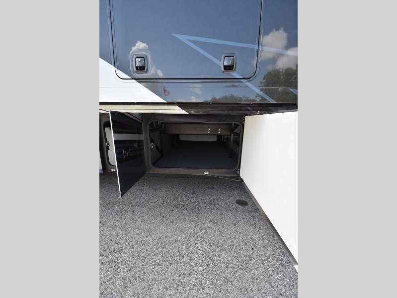 Outdoor Living Ready with a power awning, exterior entertainment system, and ample storage to bring along all your gear for outdoor adventures.