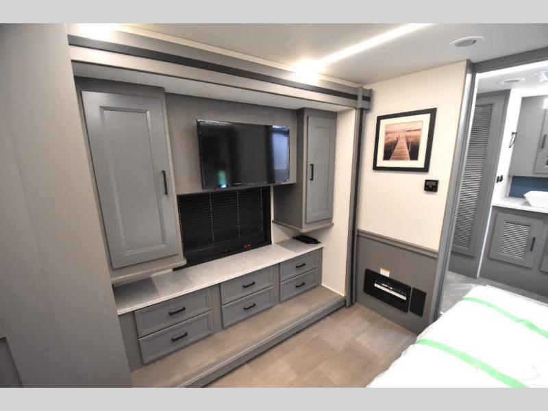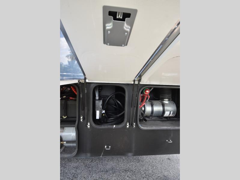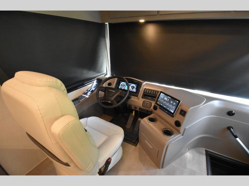 Advanced Technology & Entertainment with a premium sound system, LED TVs, and a touchscreen control panel to manage lighting, climate, and slide-outs effortlessly.