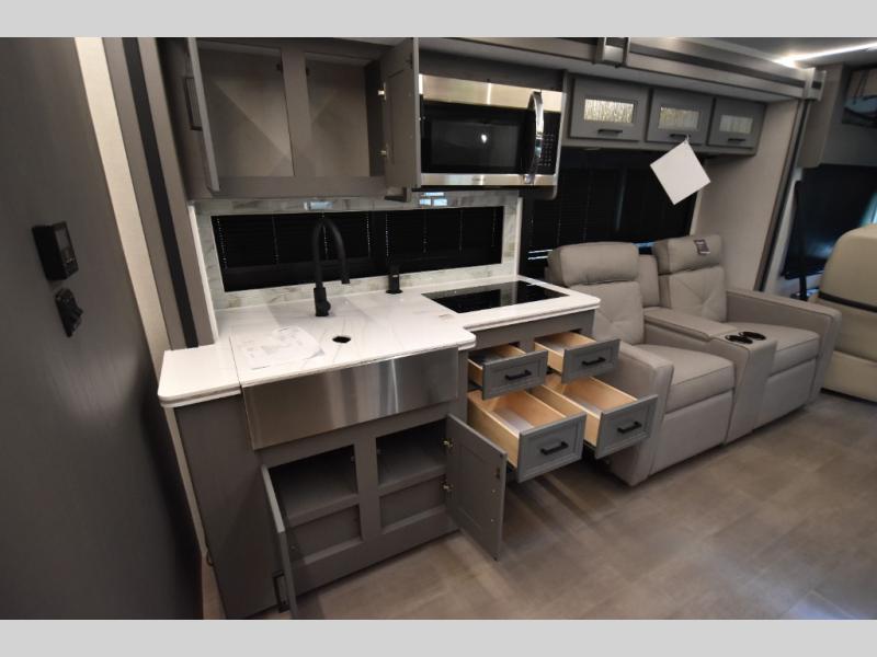 Ideal for Full-Time RVing or Extended Travel – The spacious floorplan, residential-style features, and high-end appliances make this motorhome perfect for those who want to travel full-time or take long road trips in comfort.