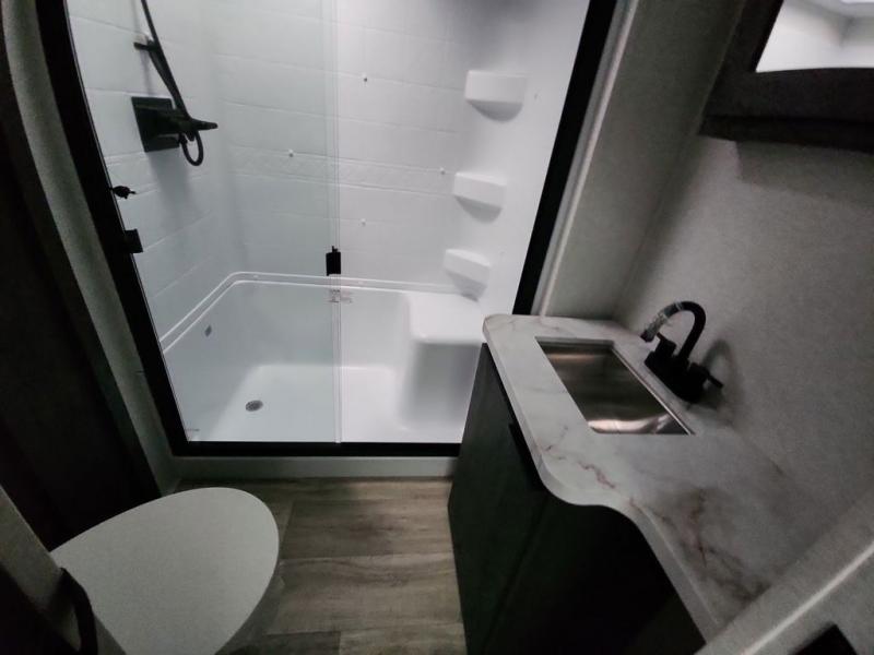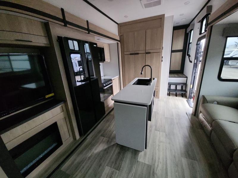 Each one of these CrossRoads RV Cruiser fifth wheels have high end features incorporated into them! Some of these features include a Secure Stance entry step, a pass-through storage with magnetic slam latch doors to keep your gear stored safely, and an electric awning with LED lights to highlight the good times at night. Their construction consists of a one-piece seamless Super Flex roof, an aerodynamic front cap, plus high gloss laminated sidewalls for added durability. You'll have the option to stay connected wherever you go with the Winegard WiFi prep, and the HDTV will keep you entertained on those rainy days. The interior includes hardwood cabinet doors, stainless steel appliances, roller shades, solid surface kitchen countertops, and many more comforts!