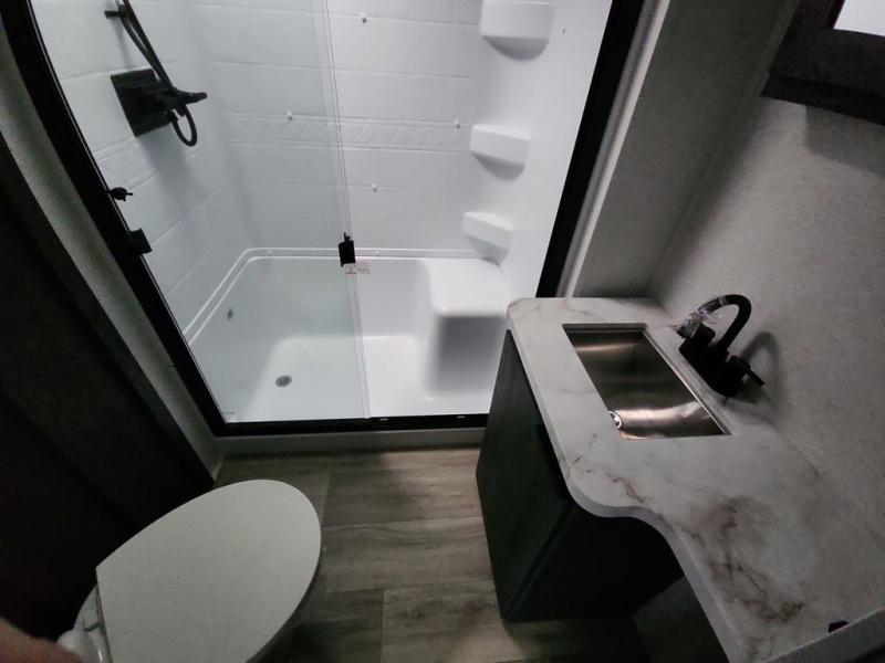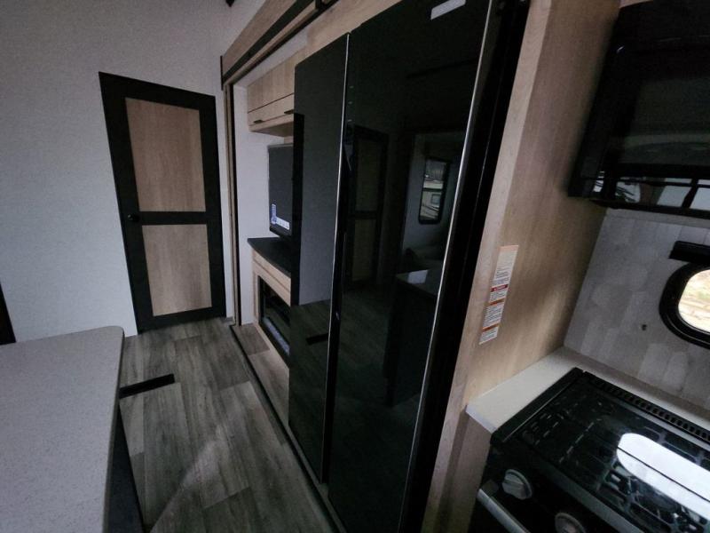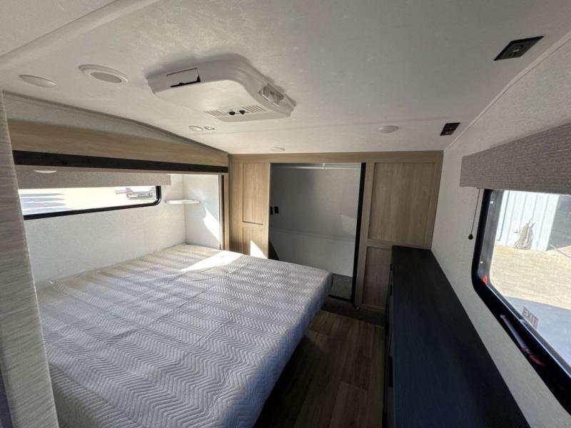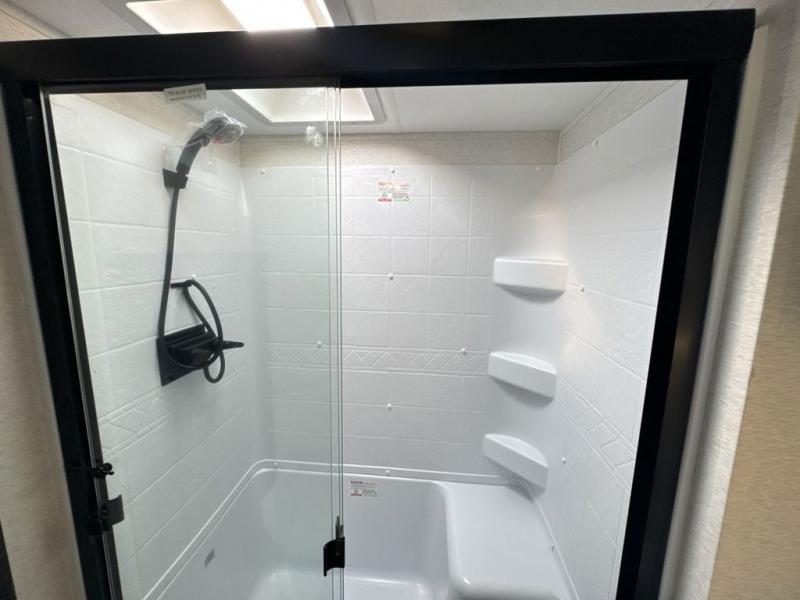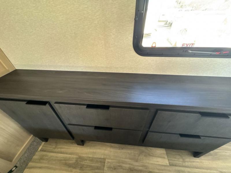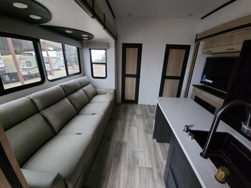 Each one of these CrossRoads RV Cruiser fifth wheels have high end features incorporated into them! Some of these features include a Secure Stance entry step, a pass-through storage with magnetic slam latch doors to keep your gear stored safely, and an electric awning with LED lights to highlight the good times at night. Their construction consists of a one-piece seamless Super Flex roof, an aerodynamic front cap, plus high gloss laminated sidewalls for added durability. You'll have the option to stay connected wherever you go with the Winegard WiFi prep, and the HDTV will keep you entertained on those rainy days. The interior includes hardwood cabinet doors, stainless steel appliances, roller shades, solid surface kitchen countertops, and many more comforts!