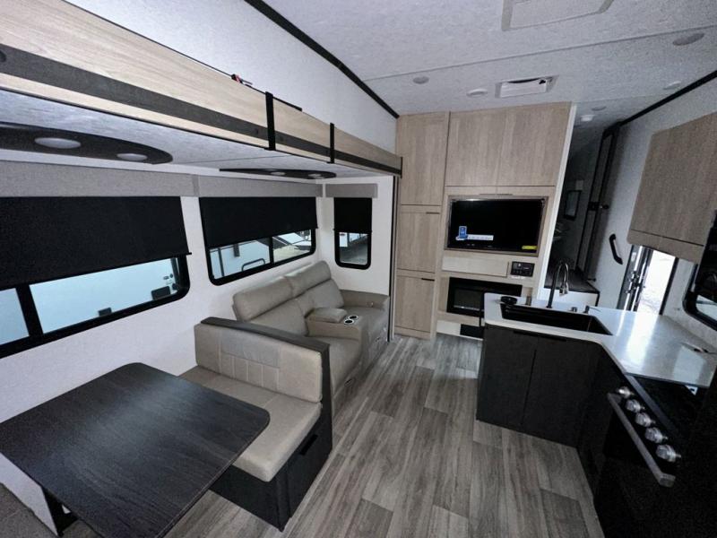 Each one of these CrossRoads RV Cruiser Aire fifth wheels and travel trailers have high end features incorporated into them! Some of these features include a Secure Stance entry step, a pass-through storage with magnetic slam latch doors to keep your gear stored safely, and an electric awning with LED lights to highlight the good times at night. Their construction consists of a total truss roof system, an aerodynamic front cap, plus laminated sidewalls, slide ends and rear wall for added durability. Stay connected where ever you go with the Winegard 360+ WiFi prep, and the HDTV will keep you entertained on those rainy days. The interior includes new cabinets, stainless steel appliances, roller shades, decorative backsplash, and many more comforts!