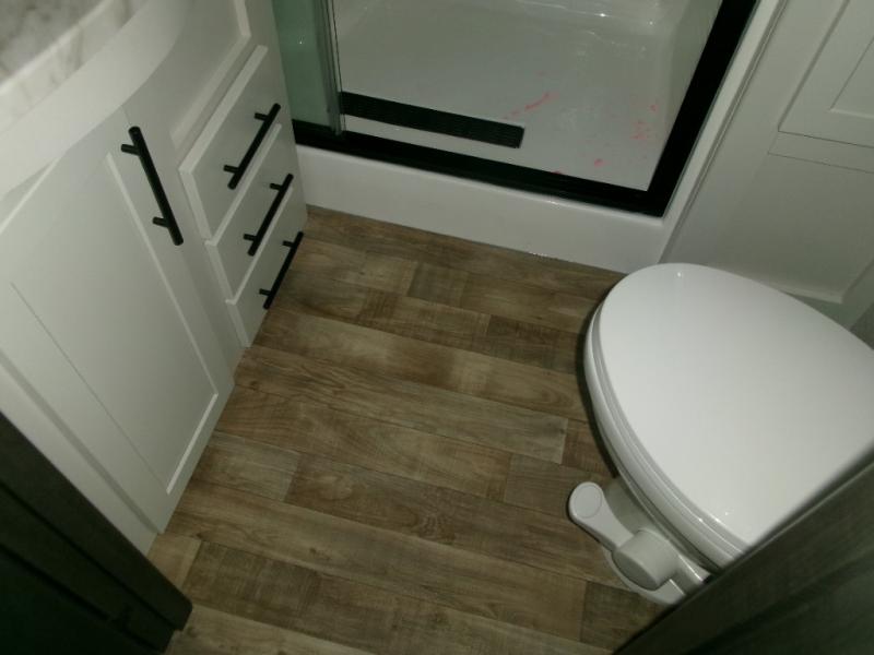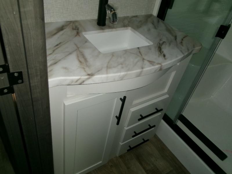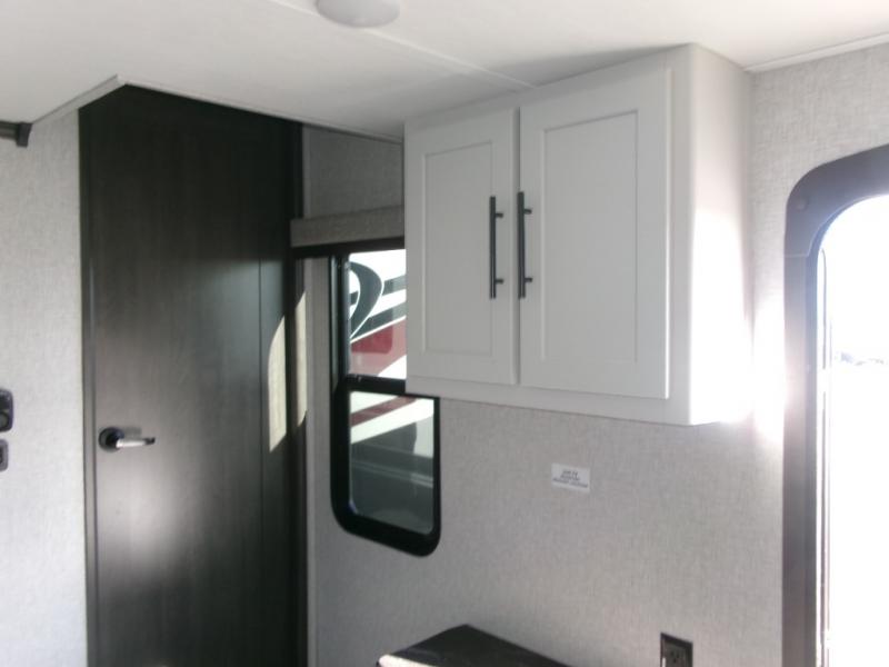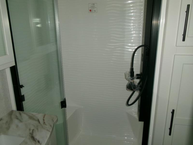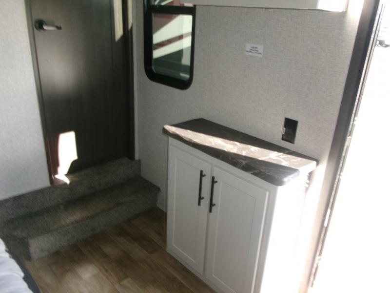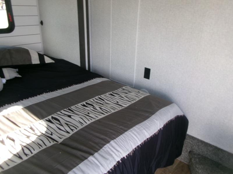 Each Hampton destination trailer by CrossRoads RV includes a one-piece fiberglass front cap, tinted glass windows, and an outside faucet that will surely come in handy when wanting to rinse off your hands or even shoes after exploring outdoors. Each is constructed with a fiberglass roof and floor insulation with radiant tech foil, an enclosed underbelly, and severe weather welded mounts and rain gutters along the entire roof line. And, the Convenience package that comes standard includes KeyTV, a microwave, a quilted bedspread, a power vent in the bathroom, and more. Other interior features offered include decorative accent lighting, a 9-foot floor to ceiling height, a patio door with a swing-out assist rail, and two-toned wood fascia. So choose your destination, select your favorite Hampton, and start feeling at home when you are actually on vacation!